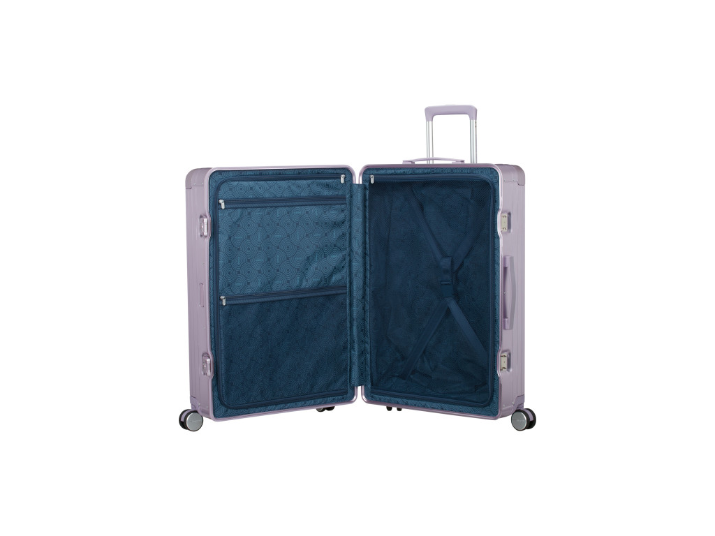 Lehká, ale pevná hliníková konstrukce poskytuje vynikající ochranu vašich věcí před nárazy a poškozením. Čtyři dvojitá kolečka zajišťují hladkou jízdu v každém směru, a díky rozšiřitelné kapacitě získáte ještě více místa na vše, co potřebujete. Integrovaný TSA zámek dodává bezpečnost vašemu cestování, zatímco elegantní design s kruhovými vzory vynikne v davu.