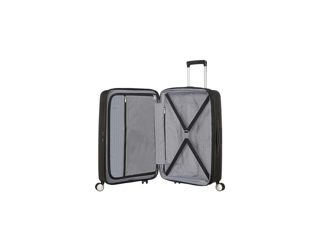 Snadnou manipulaci umožňuje polohovatelná trolej s nastavitelnou délkou a dvě madla (horní a boční). Rozšiřitelnost poskytuje větší prostor pro zabalení všech věcí v případě potřeby a elastické křížové popruhy udrží všechny předměty na místě.