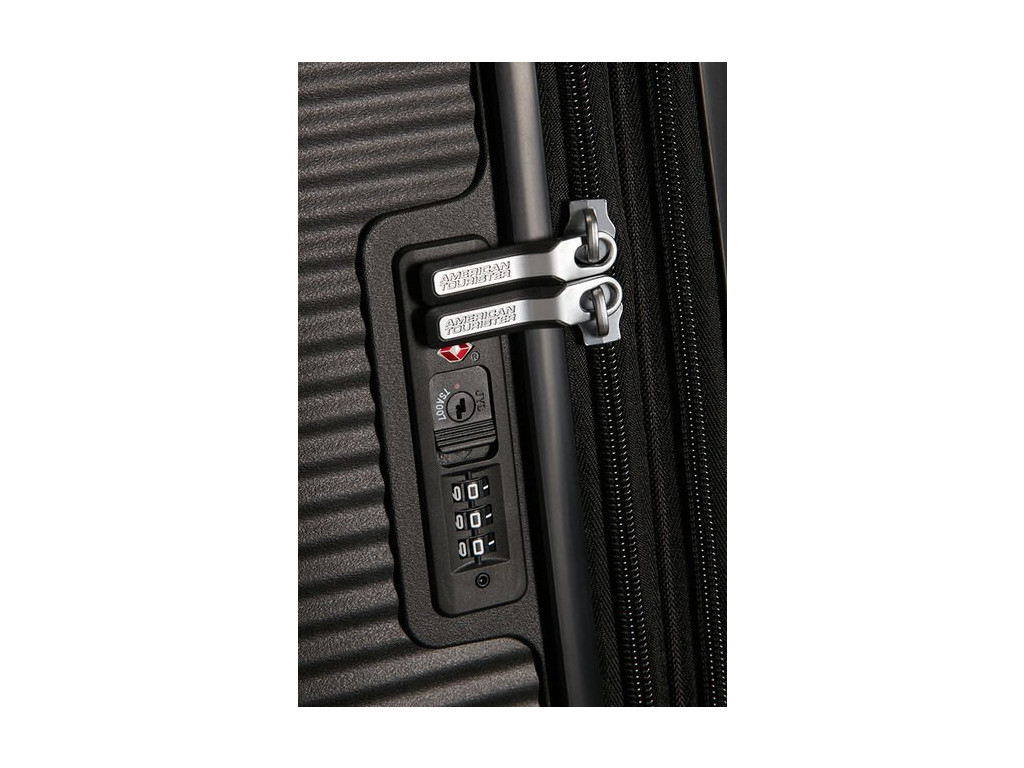 Zámek TSA pro zvýšenou bezpečnost. TSA zámek umožňuje při kontrolách na letišti bezpečnostním orgánům bez poškození otevřít vaše zavazadlo. Pro pohodlné převážení z místa na místo jsou kufry vybaveny čtyřmi dvojitými kolečky, která se otáčejí v plném rozsahu 360°.