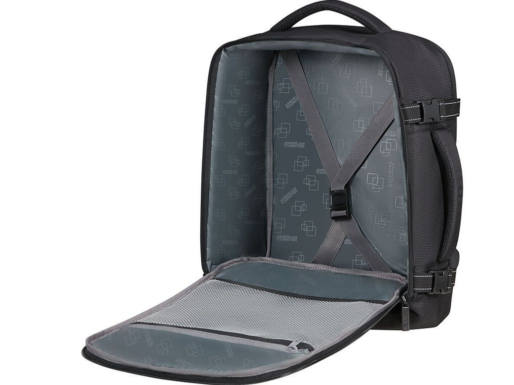 American Tourister TAKE2CABIN Kabinový batoh je zavazadlo které může být použito jako batoh nebo jako malé zavazadlo pro cestování letadlem. Například k uskladnění pod sedadlo v letadle. Splňuje rozměry malého osobního zavazadla pro nízkonákladové společnosti.