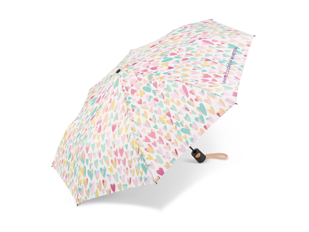 Benetton deštník Skládací automatický Aquarell Hearts Multicolor Mini 28cm/95cm