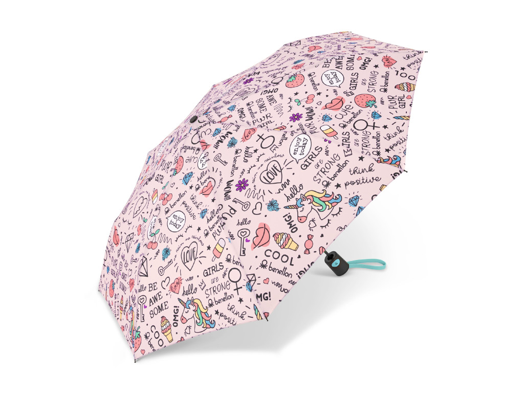 Benetton deštník Skládací automatický Růžový Mini 28cm/95cm