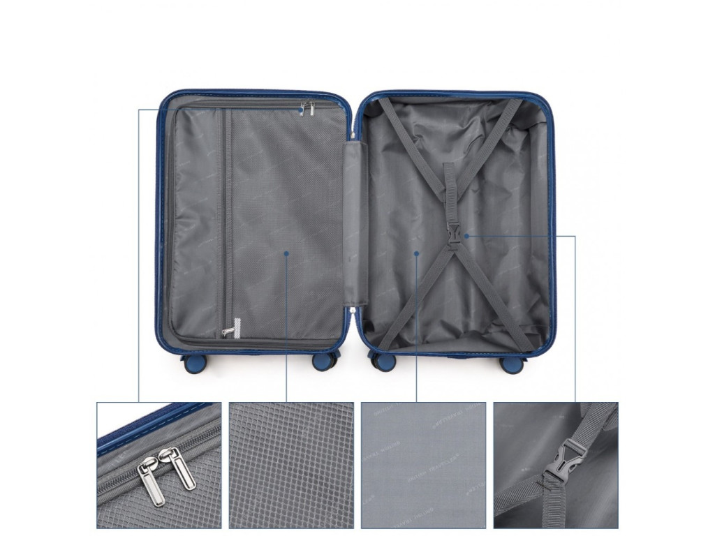 Kufr značky BRITISH TRAVELLER. Jedná se o novou značku v našem sortimentu. Je vyroben z materiálu ABS s hliníkovou výsuvnou rukojetí a TSA číselným zámkem. ABS materiál je pevný, nabízí odolnost proti poškrábání a je vhodný do nízkých teplot. Tento materiál není tolik pružný jako polypropylen ale pro nenáročné cesty je plně dostačující.