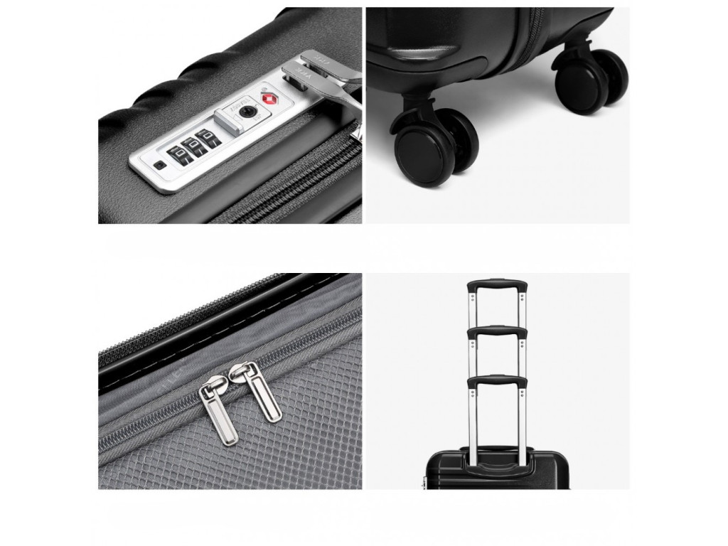 Kufr značky BRITISH TRAVELLER. Jedná se o novou značku v našem sortimentu. Je vyroben z materiálu ABS s hliníkovou výsuvnou rukojetí a TSA číselným zámkem. ABS materiál je pevný, nabízí odolnost proti poškrábání a je vhodný do nízkých teplot. Tento materiál není tolik pružný jako polypropylen ale pro nenáročné cesty je plně dostačující.