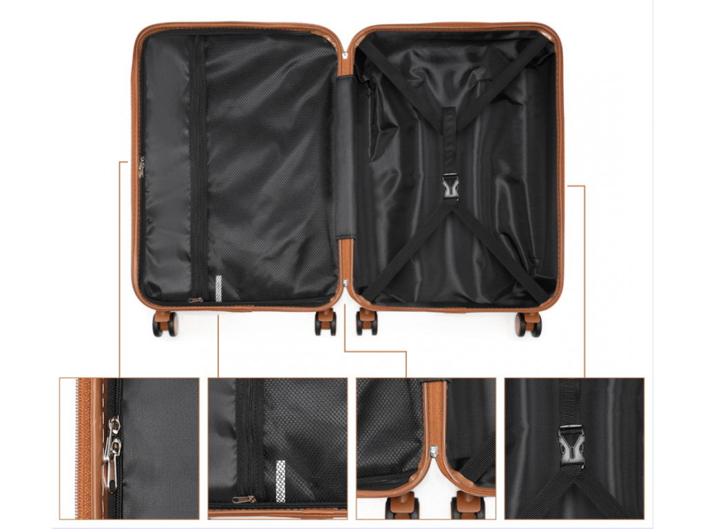 Kufry jsou vyrobeny z materiálu ABS s hliníkovou výsuvnou rukojetí a TSA číselným zámkem. ABS materiál je pevný, nabízí odolnost proti poškrábání a je vhodný do nízkých teplot. Tento materiál není tolik pružný jako polypropylen ale pro nenáročné cesty je plně dostačující.