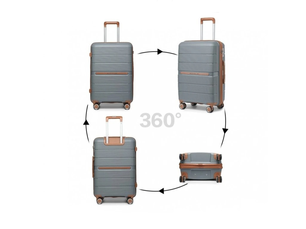 Kufr je vyroben z kvalitního polypropylenu s tichými dvojitými kolečky, hliníkovou výsuvnou rukojetí, TSA číselným zámkem a kvalitními zipy. Madlo kufru na horní i boční straně.
