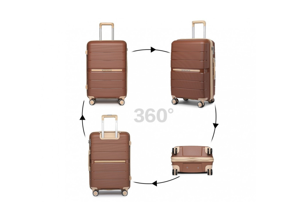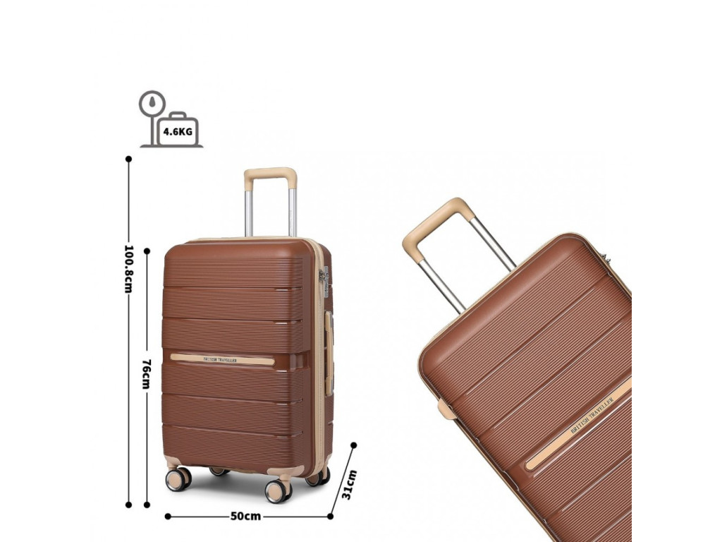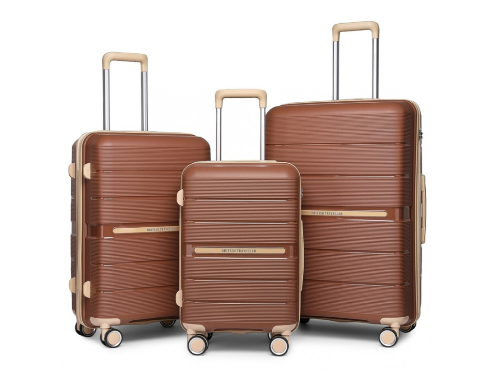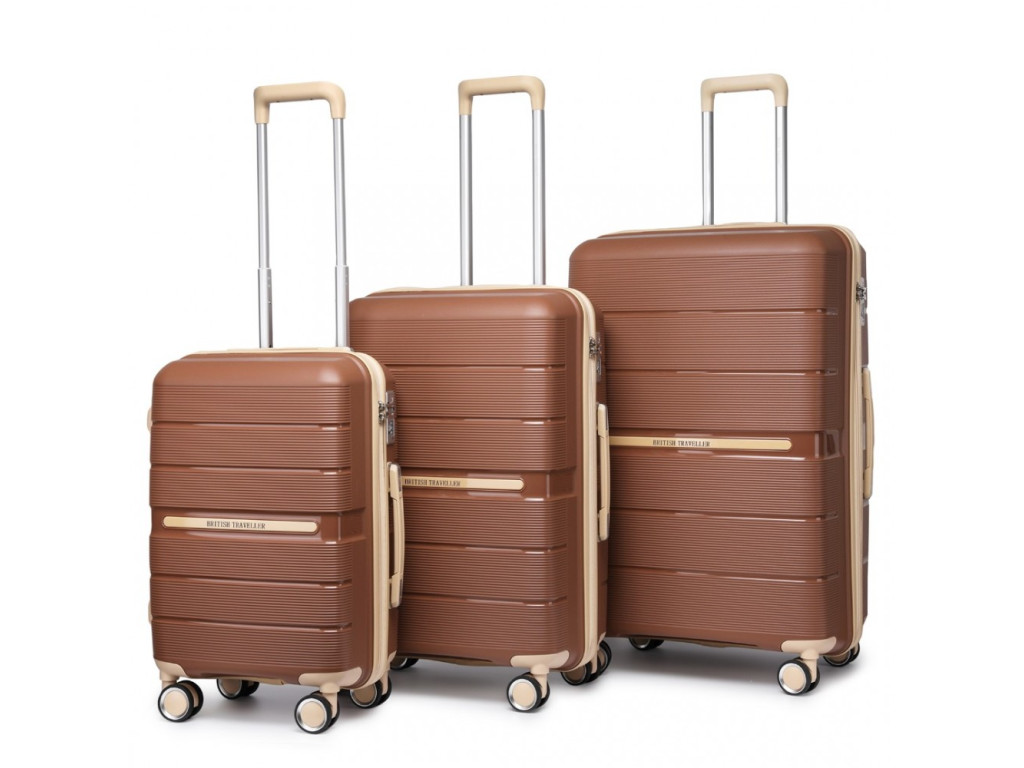 British Traveller K2392L Sada 3 kufry spinner 55cm 66cm 76cm Hnědý Polypropylen