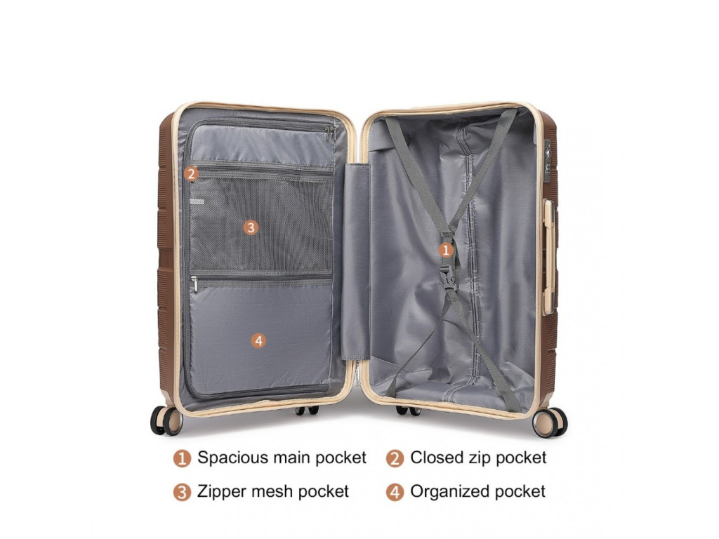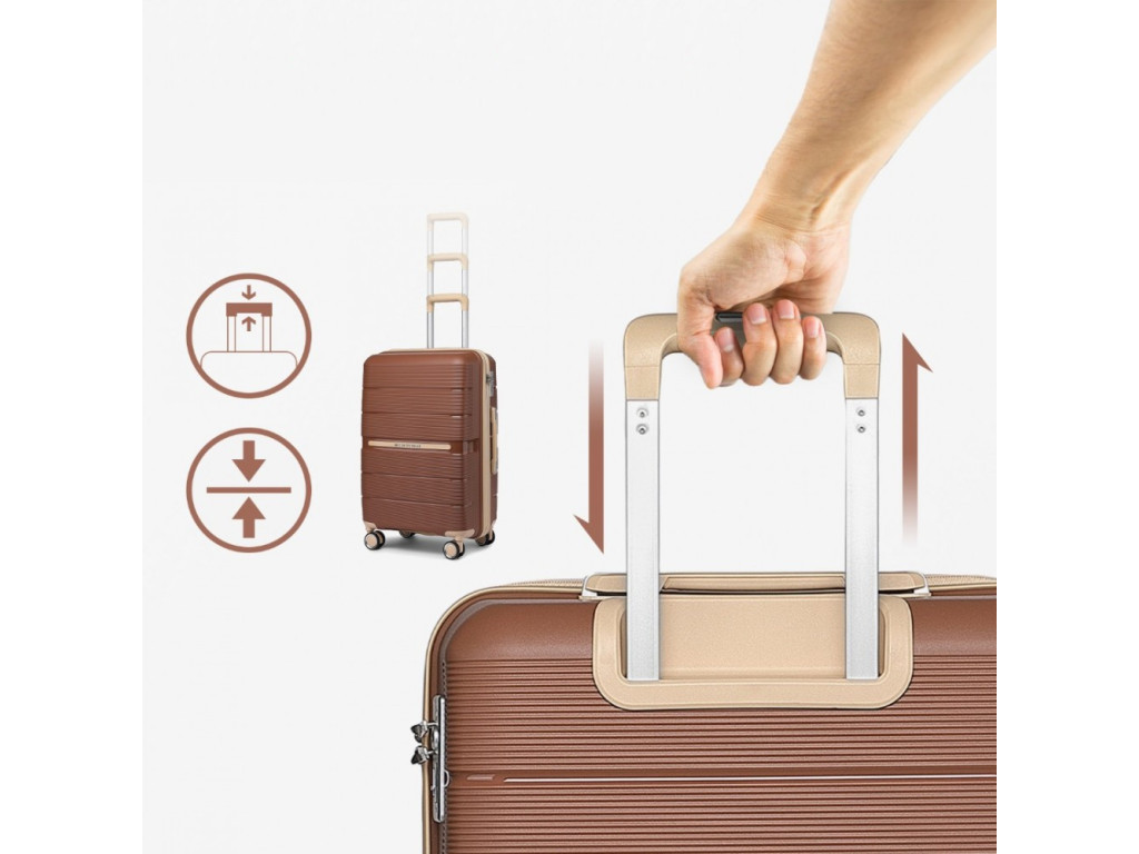 Kufry jsou vyrobeny z kvalitního polypropylenu s tichými dvojitými kolečky, hliníkovou výsuvnou rukojetí, TSA číselným zámkem a kvalitními zipy. Mezi hlavní výhody polypropylenu je výborná použitelnost při cestování letadlem. U všech rozměrů je madlo kufru na horní i boční straně. Zejména u kabinového kufru většina výrobců madlo na podélné straně nenabízí.