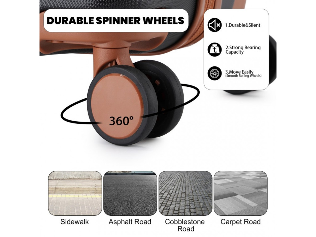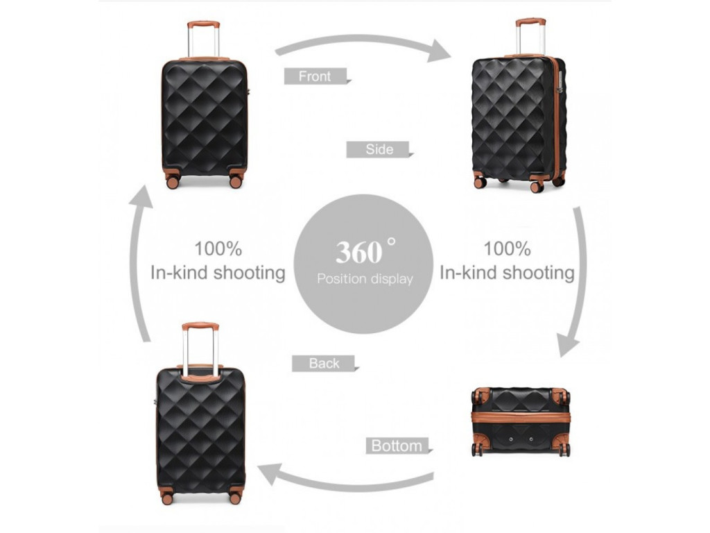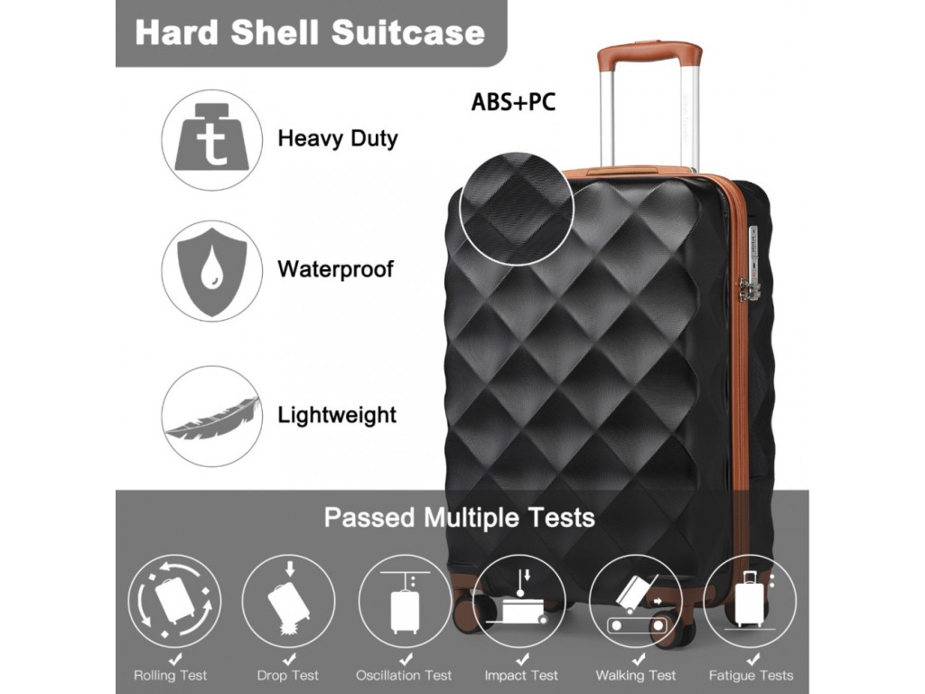 Kufr je vyroben z polykarbonátovou vrstvou potaženým ABS s tichými dvojitými kolečky, hliníkovou výsuvnou rukojetí nebo TSA číselným zámkem. ABS materiál nabízí odolnost proti poškrábání a je vhodný do nízkých teplot. ABS materiál není tolik pružný jako polypropylen ale pro občasné cesty je plně dostačující.
