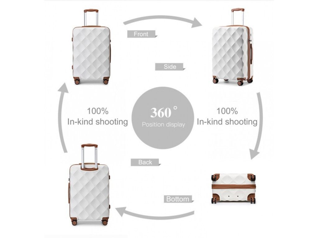 Kufr je vyroben z polykarbonátovou vrstvou potaženým ABS s tichými dvojitými kolečky, hliníkovou výsuvnou rukojetí nebo TSA číselným zámkem. ABS materiál nabízí odolnost proti poškrábání a je vhodný do nízkých teplot. ABS materiál není tolik pružný jako polypropylen ale pro občasné cesty je plně dostačující.