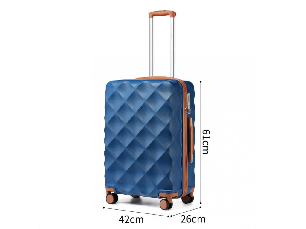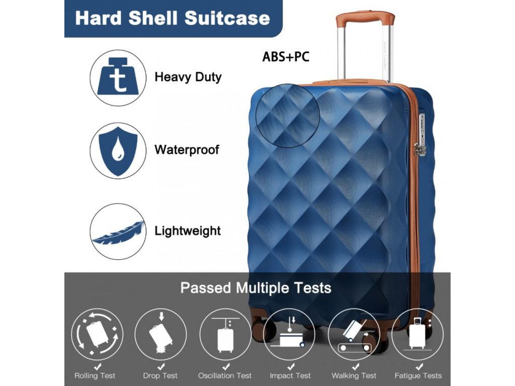 Kufr je vyroben z polykarbonátovou vrstvou potaženým ABS s tichými dvojitými kolečky, hliníkovou výsuvnou rukojetí nebo TSA číselným zámkem. ABS materiál nabízí odolnost proti poškrábání a je vhodný do nízkých teplot. ABS materiál není tolik pružný jako polypropylen ale pro občasné cesty je plně dostačující.