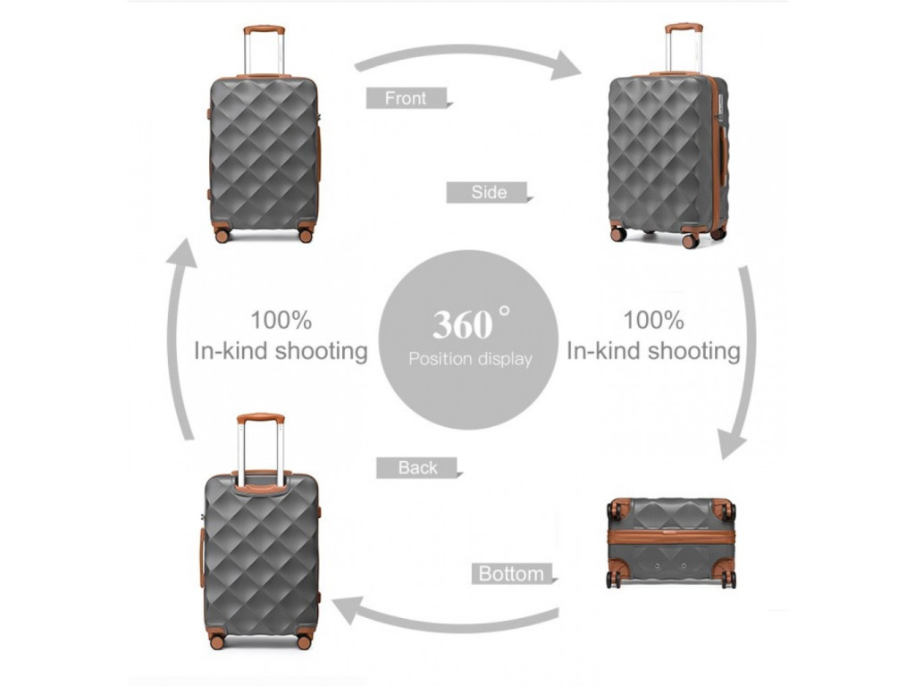 Kufr je vyroben z polykarbonátovou vrstvou potaženým ABS s tichými dvojitými kolečky, hliníkovou výsuvnou rukojetí nebo TSA číselným zámkem. ABS materiál nabízí odolnost proti poškrábání a je vhodný do nízkých teplot. ABS materiál není tolik pružný jako polypropylen ale pro občasné cesty je plně dostačující.