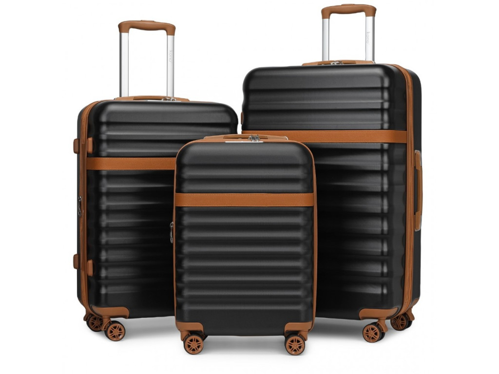 Kono 2484 Sada kufrů 3ks spinner 55/65/75cm Černý ABS/Polykarbonát