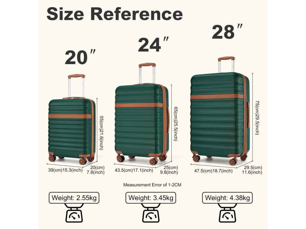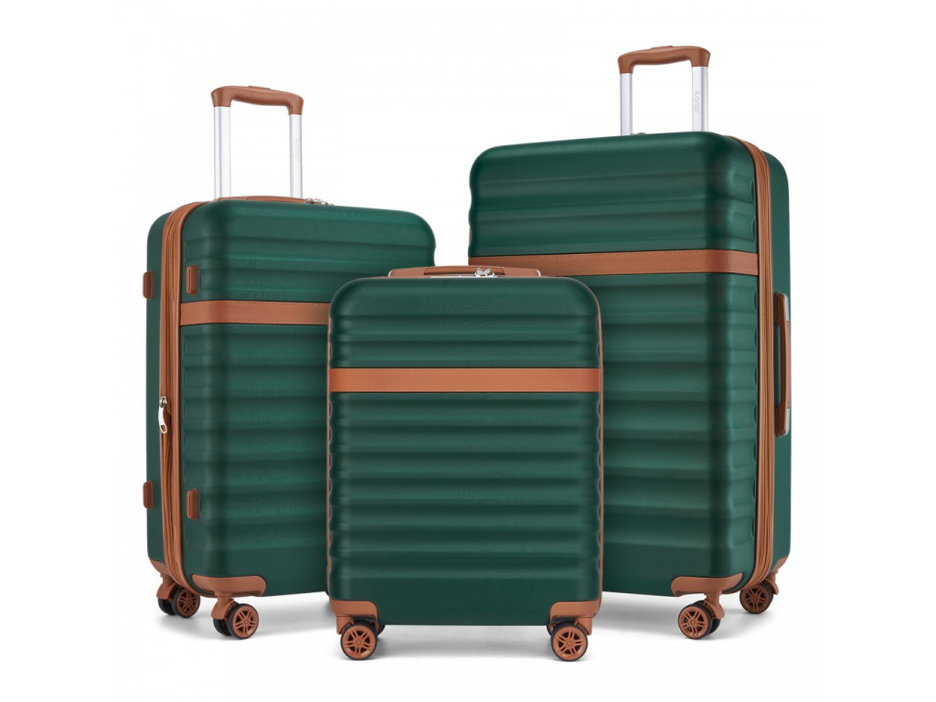 Kono 2484 Sada kufrů 3ks spinner 55/65/75cm Zelená ABS/Polykarbonát