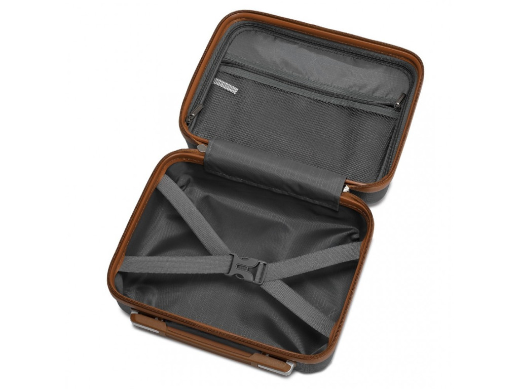 - Nylonové křížové popruhy pro upevnění obsahu na jedné straně a zipem zavíraná přihrádka na druhé straně kufru