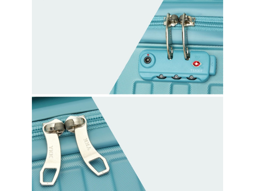 Kufry jsou vyrobeny z materiálu ABS/Polykarbonát s hliníkovou výsuvnou rukojetí a TSA číselným zámkem. ABS/Polykarbonát je pevný materiál, nabízí odolnost proti poškrábání a je vhodný do nízkých teplot. Tento materiál není tolik pružný jako polypropylen, ale pro nenáročné cesty je plně dostačující.