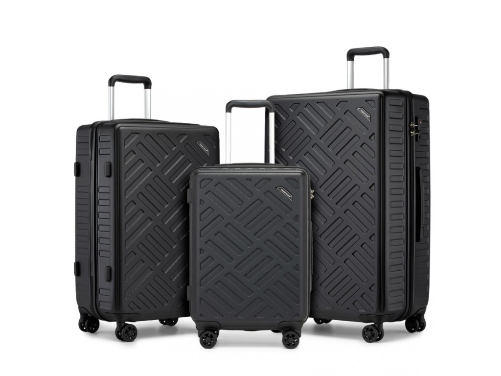 Kono 2495 Sada 3 kufrů Spinner 55/65/75cm Černý ABS/Polykarbonát