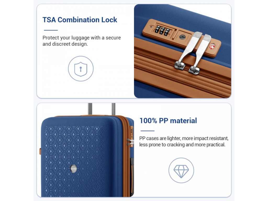 Kolekce kufrů KONO 2594 spojuje moderní design s praktickými detaily, které ocení každý cestovatel. Odolná skořepina z lehkého polypropylenu chrání obsah před poškozením, zatímco rozšířitelný zip nabízí více prostoru, když je potřeba. Samozřejmostí je bezpečný TSA zámek, který usnadňuje cestování i na mezinárodních letištích. Zajímavým doplňkem je integrovaný držák na nápoj, díky němuž budete mít svou kávu či láhev vody vždy po ruce. Uvnitř najdete promyšlené uspořádání s přihrádkami a popruhy pro snadnou organizaci. Tichá kolečka a pohodlné madlo pak zajišťují, že cestování s tímto kufrem je skutečně komfortní.