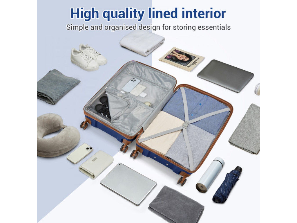 Kolekce kufrů KONO 2594 spojuje moderní design s praktickými detaily, které ocení každý cestovatel. Odolná skořepina z lehkého polypropylenu chrání obsah před poškozením, zatímco rozšířitelný zip nabízí více prostoru, když je potřeba. Samozřejmostí je bezpečný TSA zámek, který usnadňuje cestování i na mezinárodních letištích. Zajímavým doplňkem je integrovaný držák na nápoj, díky němuž budete mít svou kávu či láhev vody vždy po ruce. Uvnitř najdete promyšlené uspořádání s přihrádkami a popruhy pro snadnou organizaci. Tichá kolečka a pohodlné madlo pak zajišťují, že cestování s tímto kufrem je skutečně komfortní.