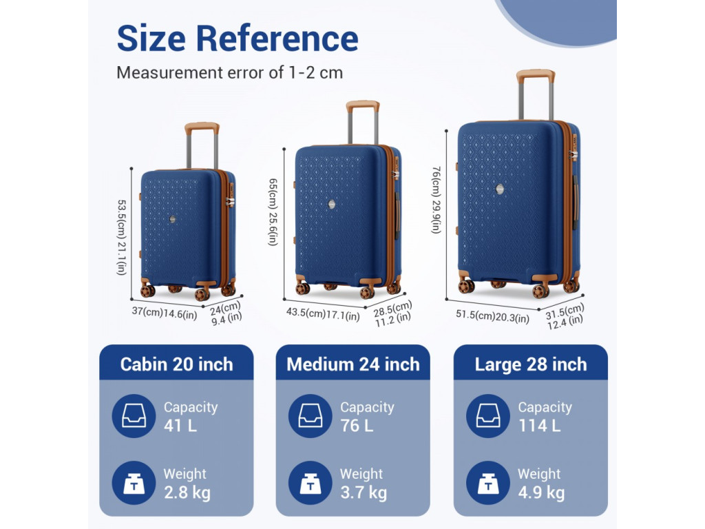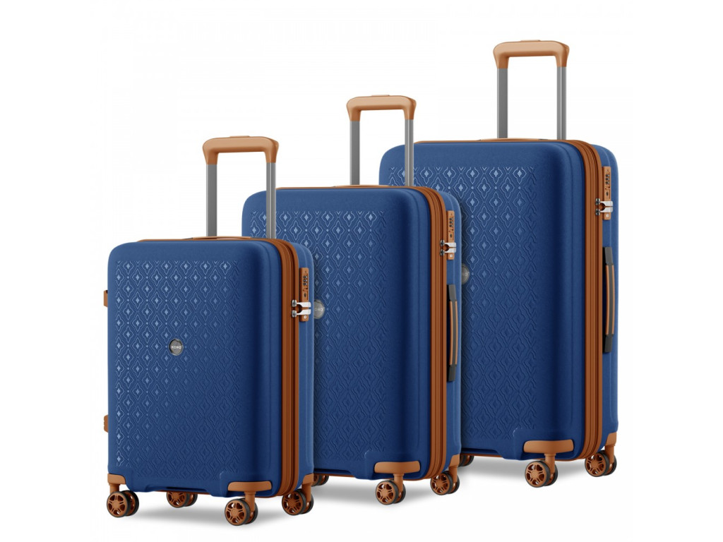 Kono 2594 Sada 3 kufrů spinner 53.5/65/76cm Modrá/Hnědá Polypropylen Rozšiřitelný