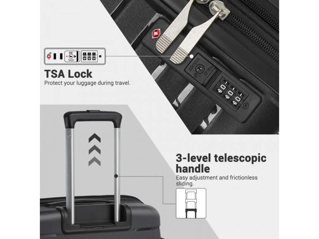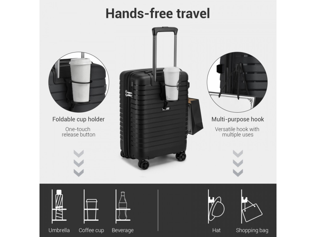 Kolekce kufrů KONO 2595 spojuje moderní design s praktickými detaily, které ocení každý cestovatel. Odolná skořepina z lehkého polypropylenu chrání obsah před poškozením, zatímco rozšířitelný zip nabízí více prostoru, když je potřeba. Samozřejmostí je bezpečný TSA zámek, který usnadňuje cestování i na mezinárodních letištích. Zajímavým doplňkem je integrovaný držák na nápoj, díky němuž budete mít svou kávu či láhev vody vždy po ruce. Uvnitř najdete promyšlené uspořádání s přihrádkami a popruhy pro snadnou organizaci. Tichá kolečka a pohodlné madlo pak zajišťují, že cestování s tímto kufrem je skutečně komfortní.