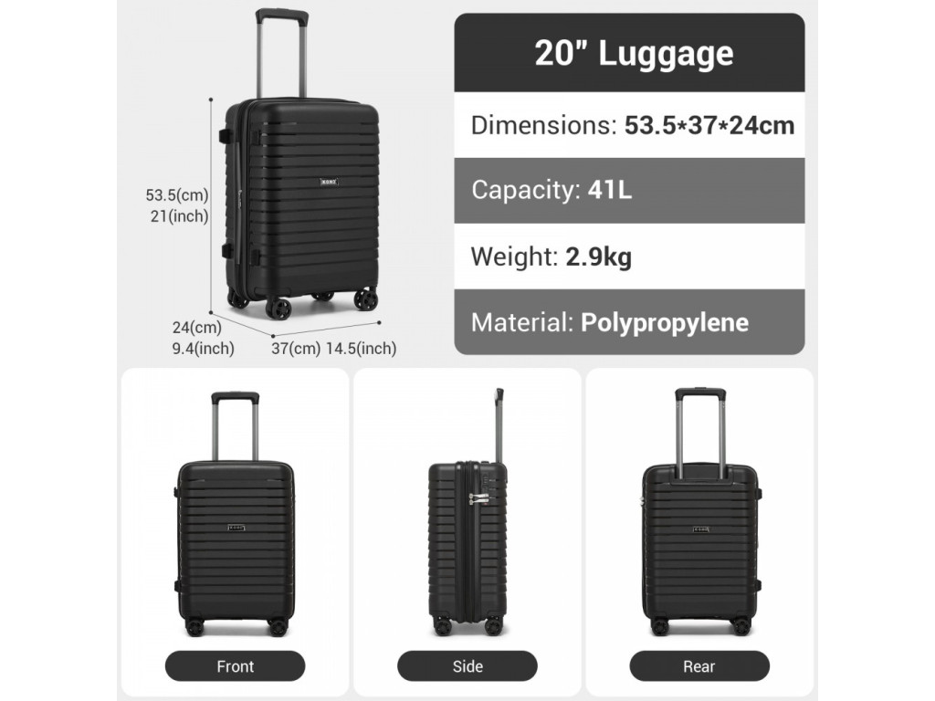 Kono 2595 Kufr spinner 53.5cm Černá Polypropylen Rozšiřitelný