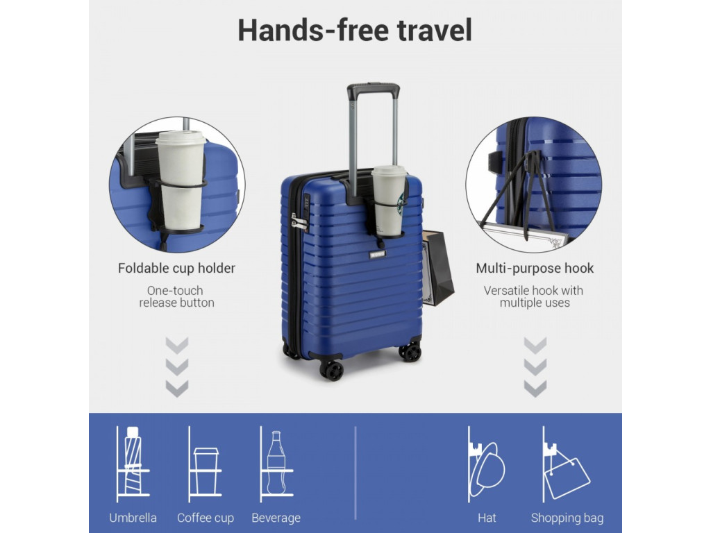 Kolekce kufrů KONO 2595 spojuje moderní design s praktickými detaily, které ocení každý cestovatel. Odolná skořepina z lehkého polypropylenu chrání obsah před poškozením, zatímco rozšířitelný zip nabízí více prostoru, když je potřeba. Samozřejmostí je bezpečný TSA zámek, který usnadňuje cestování i na mezinárodních letištích. Zajímavým doplňkem je integrovaný držák na nápoj, díky němuž budete mít svou kávu či láhev vody vždy po ruce. Uvnitř najdete promyšlené uspořádání s přihrádkami a popruhy pro snadnou organizaci. Tichá kolečka a pohodlné madlo pak zajišťují, že cestování s tímto kufrem je skutečně komfortní.