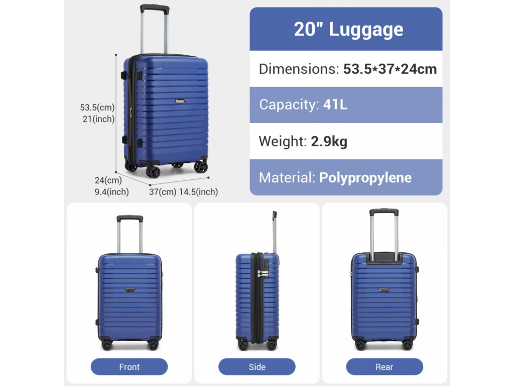 Kono 2595 Kufr spinner 53.5cm Modrá Navy Polypropylen Rozšiřitelný