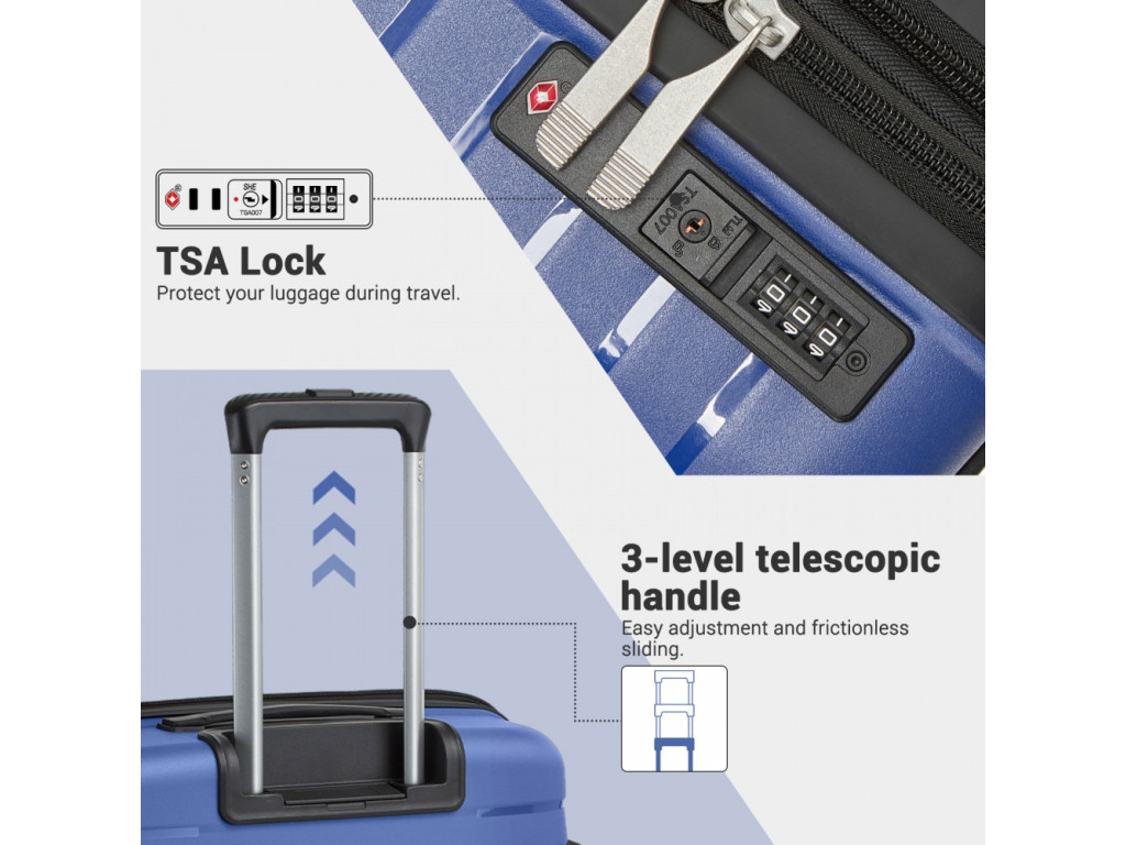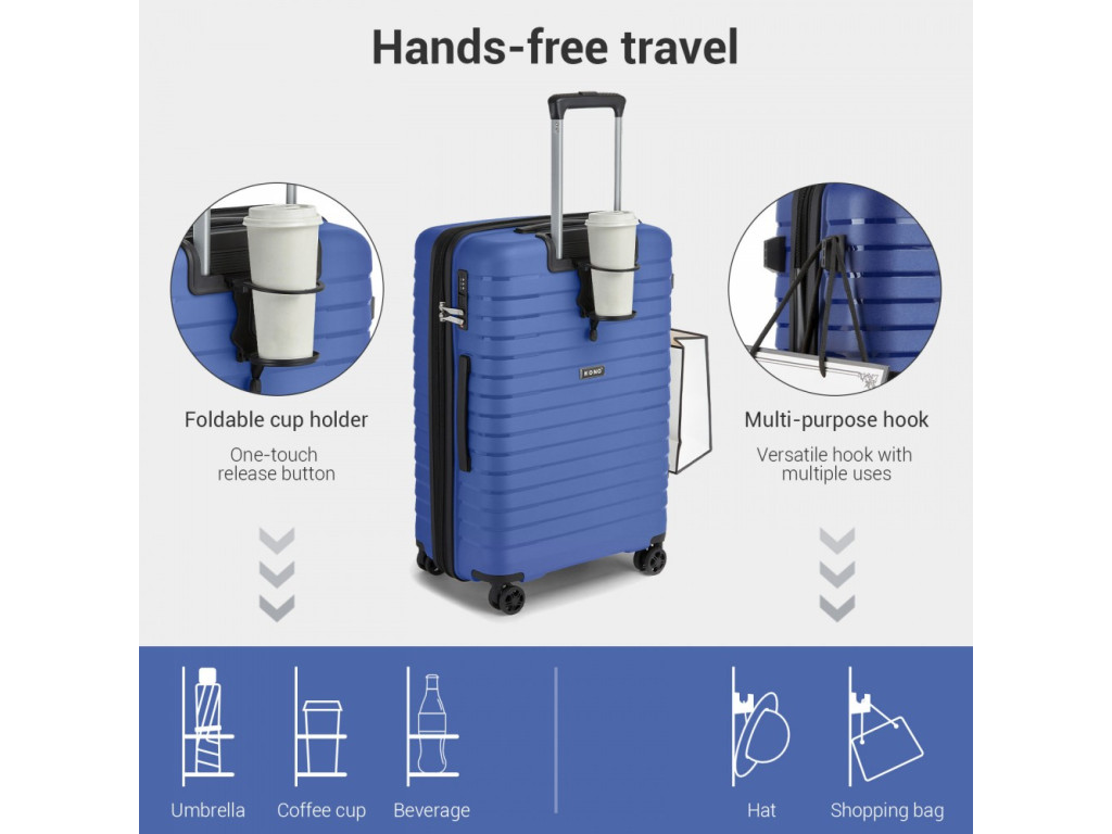 Kolekce kufrů KONO 2594 spojuje moderní design s praktickými detaily, které ocení každý cestovatel. Odolná skořepina z lehkého polypropylenu chrání obsah před poškozením, zatímco rozšířitelný zip nabízí více prostoru, když je potřeba. Samozřejmostí je bezpečný TSA zámek, který usnadňuje cestování i na mezinárodních letištích. Zajímavým doplňkem je integrovaný držák na nápoj, díky němuž budete mít svou kávu či láhev vody vždy po ruce. Uvnitř najdete promyšlené uspořádání s přihrádkami a popruhy pro snadnou organizaci. Tichá kolečka a pohodlné madlo pak zajišťují, že cestování s tímto kufrem je skutečně komfortní.