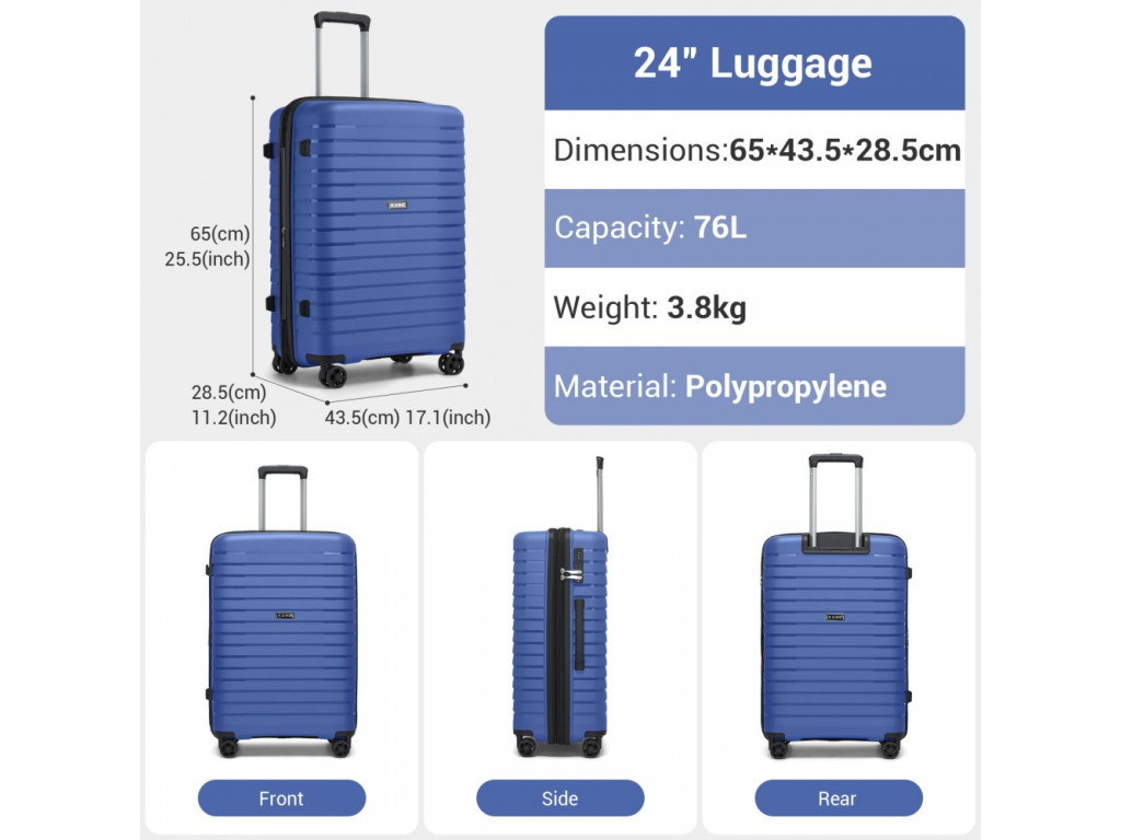 Kono 2595 Kufr spinner 65cm Modrá Navy Polypropylen Rozšiřitelný