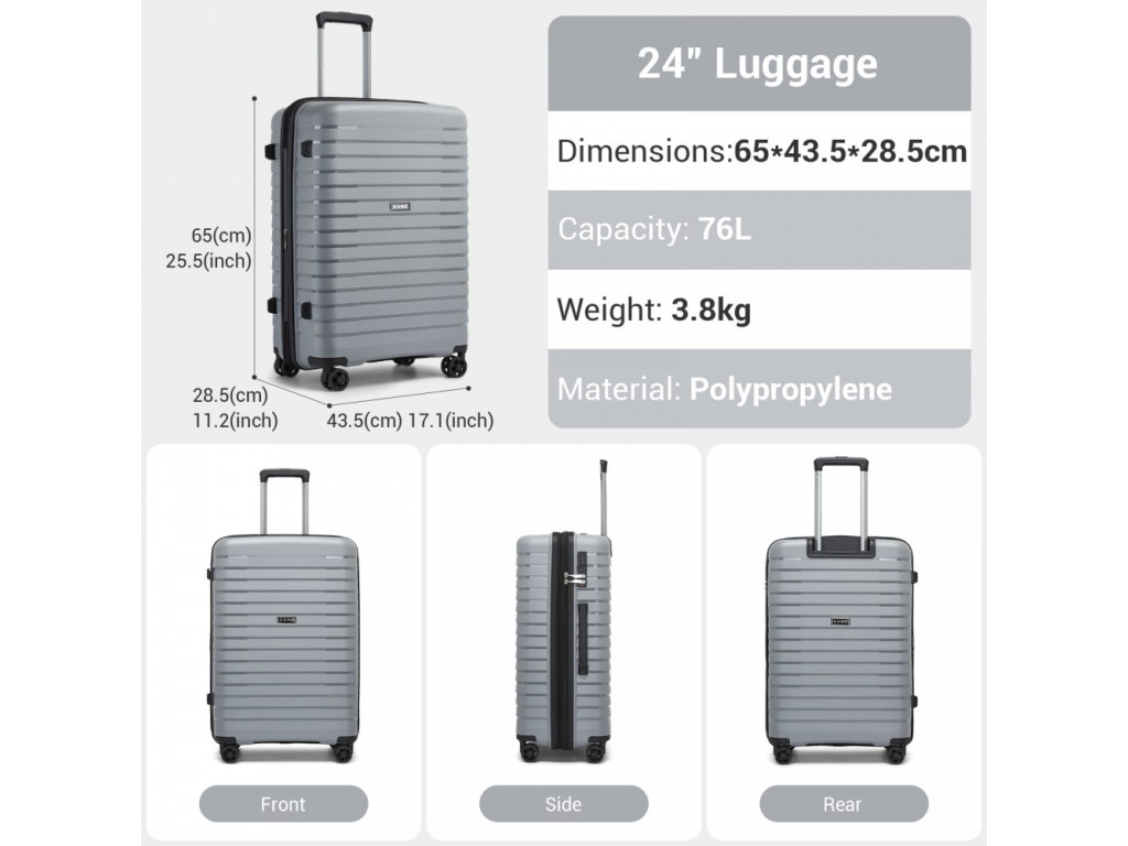 Kono 2595 Kufr spinner 65cm Šedá Polypropylen Rozšiřitelný