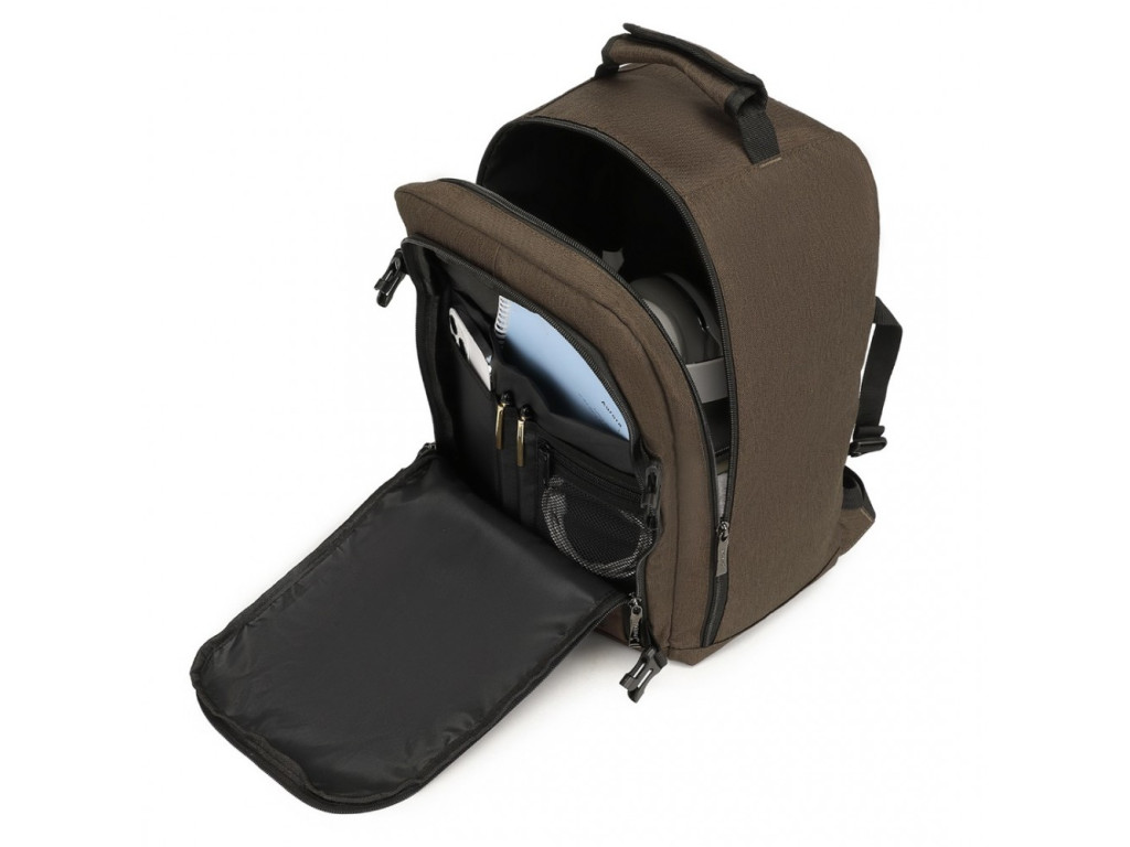 Batoh pro pohodlné přenášení notebooku velikosti 15,6" vyroben z polyesteru. Hlavní kapsa batohu se dá rozevřít jako malý kufr a lze tak pohodlně uložit oděvy pro cestování. V hlavním oddíle je polstrovaná přihrádka na notebook a další oddíl na tablet.