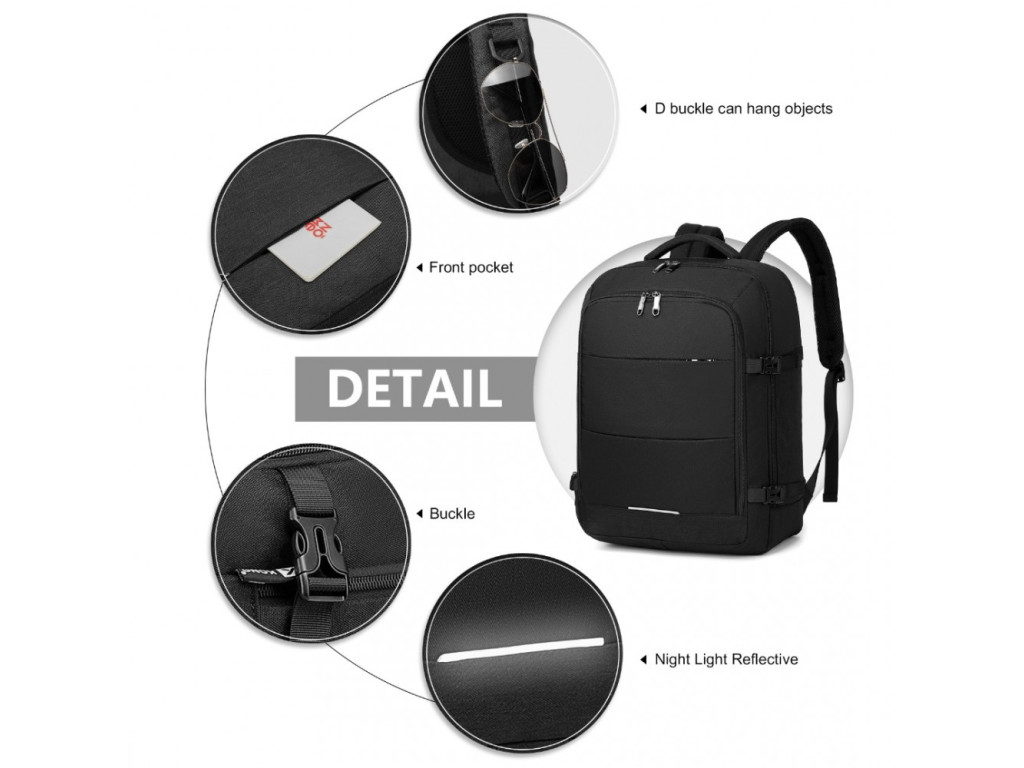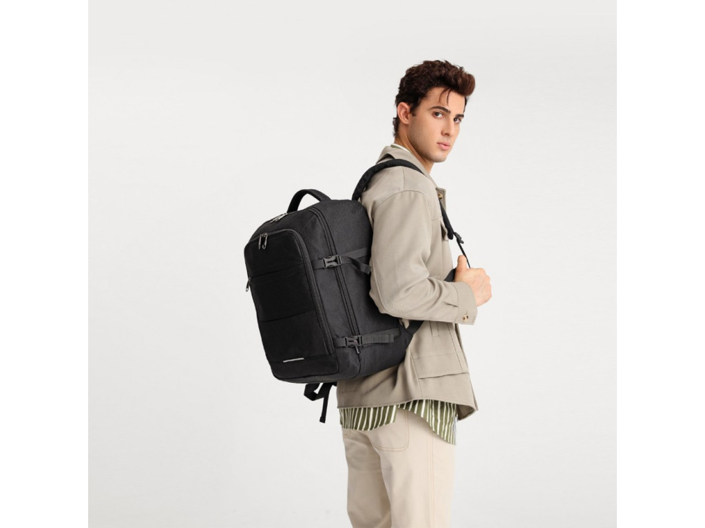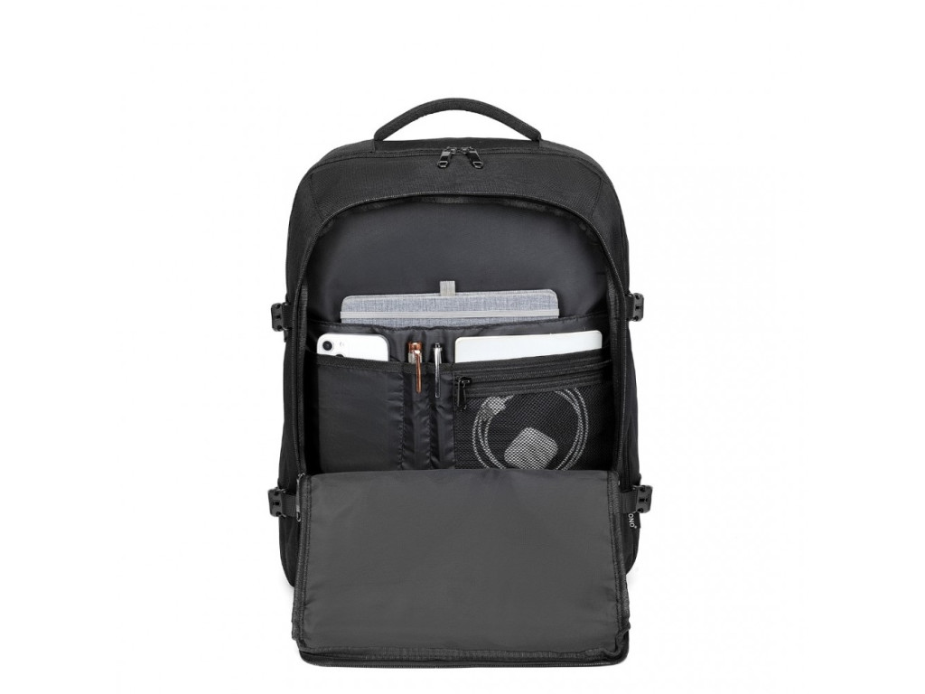 Batoh pro pohodlné přenášení notebooku velikosti 15.6" vyroben z polyesteru. Hlavní kapsa batohu se dá rozevřít jako malý kufr a lze tak pohodlně uložit oděvy pro cestování. V Předním oddíle je přihrádka na notebook a organizér na další předměty.