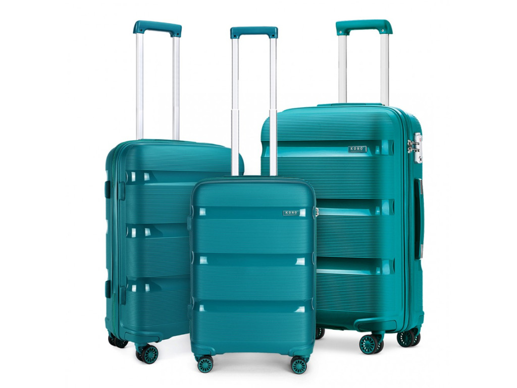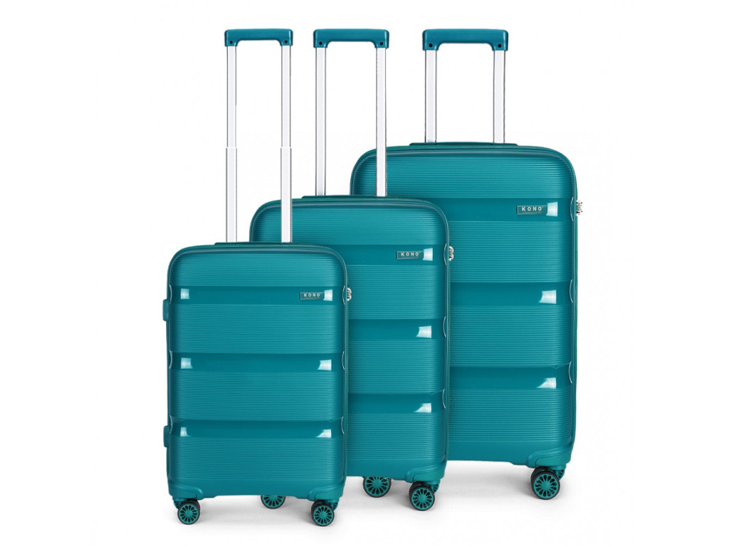 Kono K2092L Sada 3 kufrů 55cm 65cm 76cm spinner Modrozelený Polypropylen