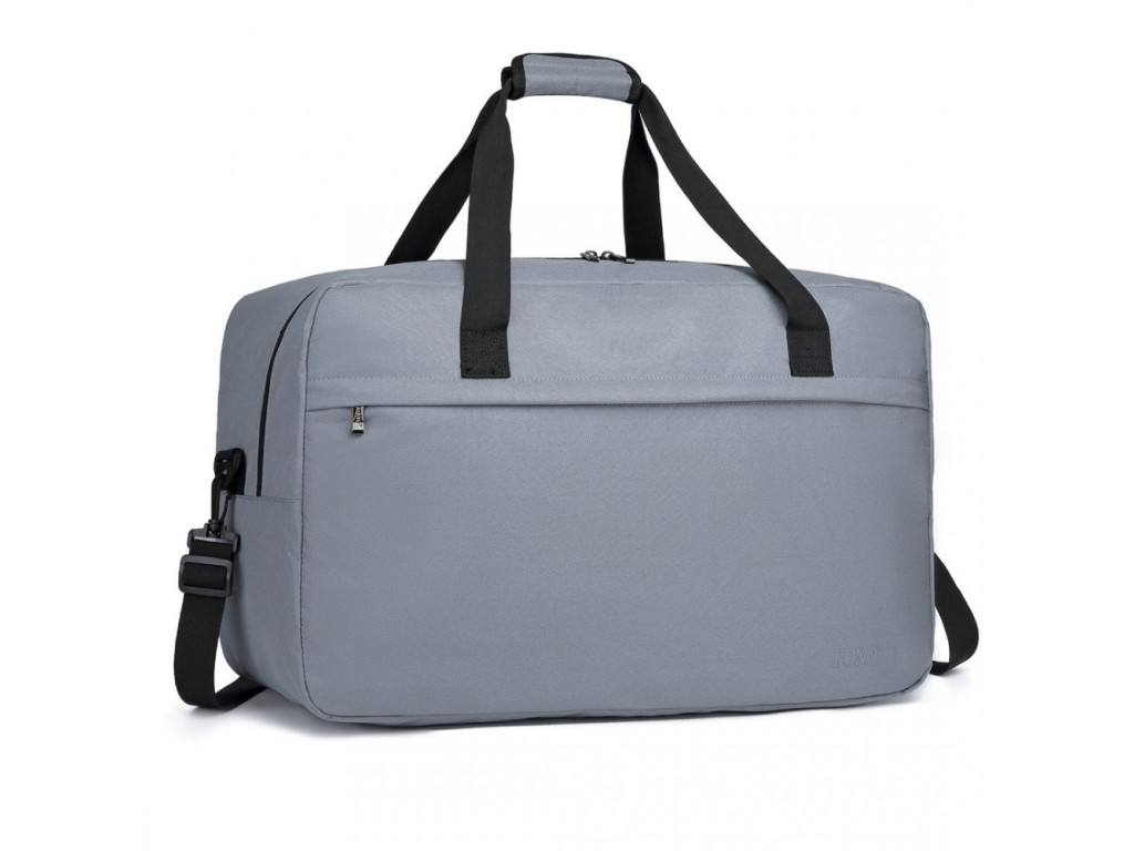 Cestovní taška na rameno značky KONO. Jedná se o textilní (látka Oxford) praktickou a lehkou tašku. Vnitřní podšívka je z polyesteru. Ucha tašky a ramenní popruh je z odolného nylonu.
