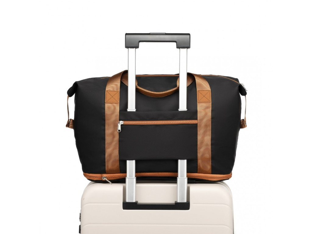 Taška je vybavena popruhem umožňujícím upevnění k rukojeti kufru a tak usnadňuje cestování.