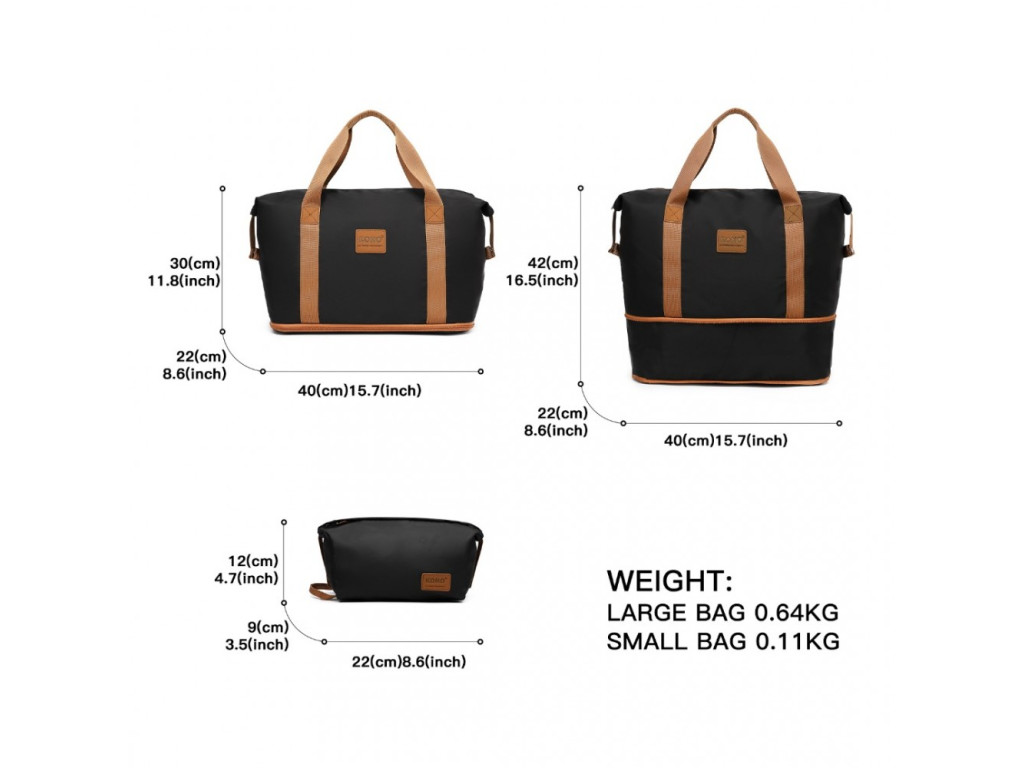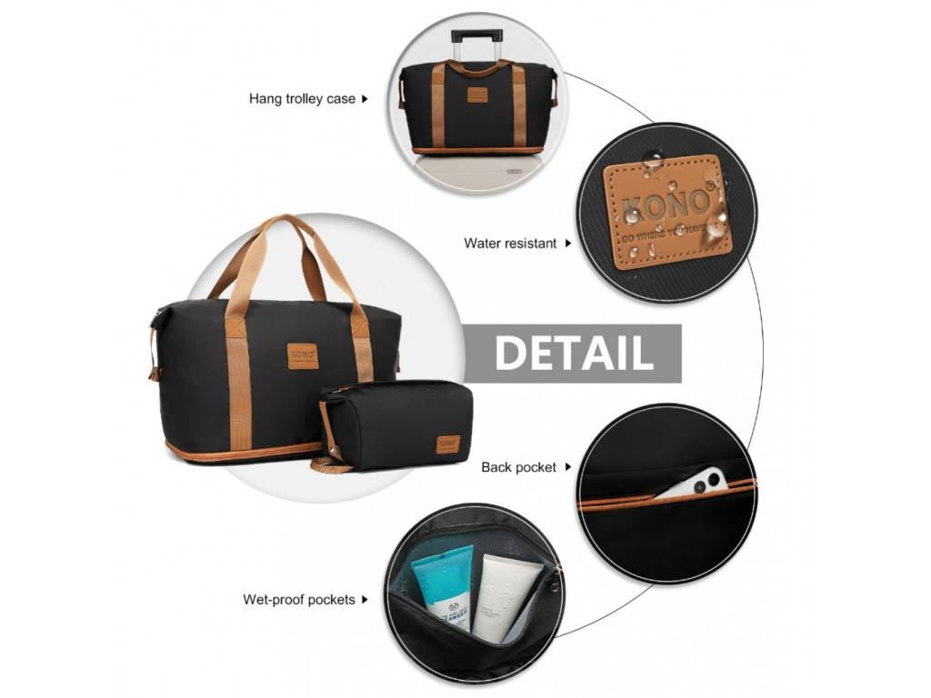 Kono EA2212 Sada Cestovní tašky a pouzdra Černá/Hnědá rozšiřitelná