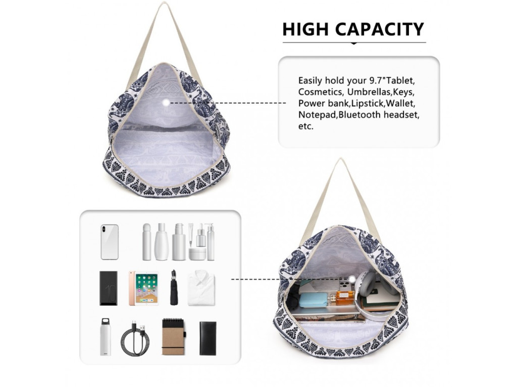 Kono EQ2308 Cestovní taška skládací Modrá/béžová 45cm Voděodolná
