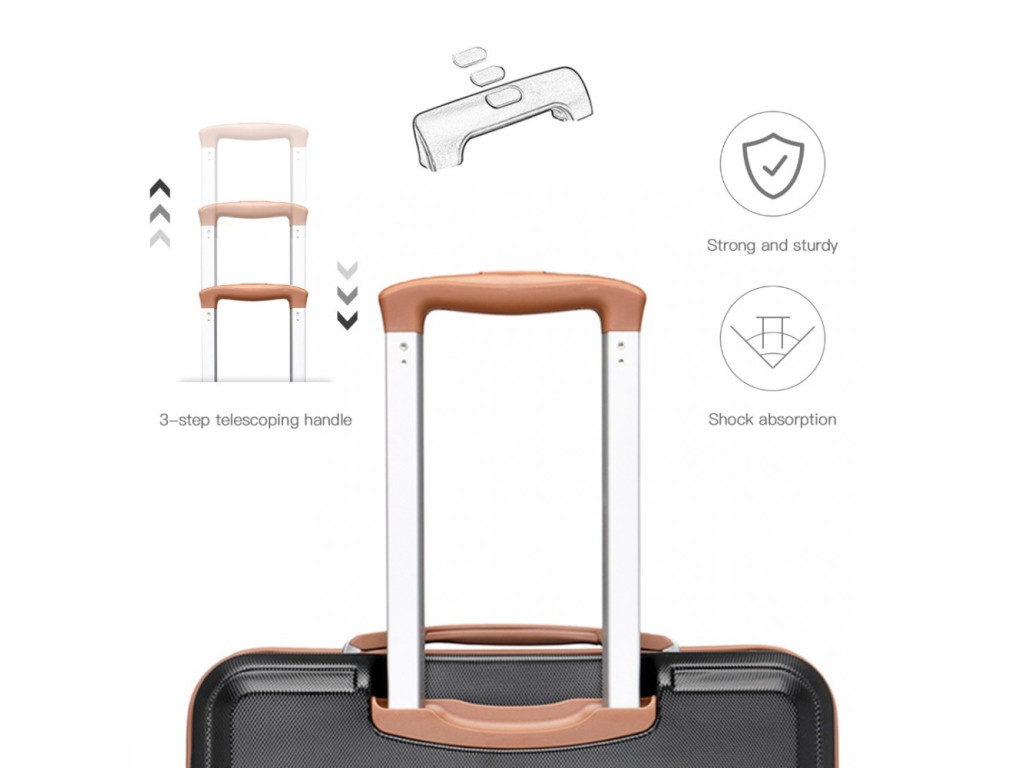 Vyroben z ABS s tichými dvojitými kolečky, hliníkovou výsuvnou rukojetí nebo TSA číselným zámkem. ABS materiál nabízí odolnost proti poškrábání a je vhodný do nízkých teplot. ABS materiál není tolik pružný jako polypropylen ale pro občasné cesty je plně dostačující.