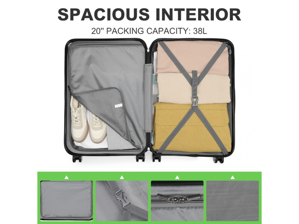 Kono K1871-1L Kufr Spinner 51.5cm Zelená ABS