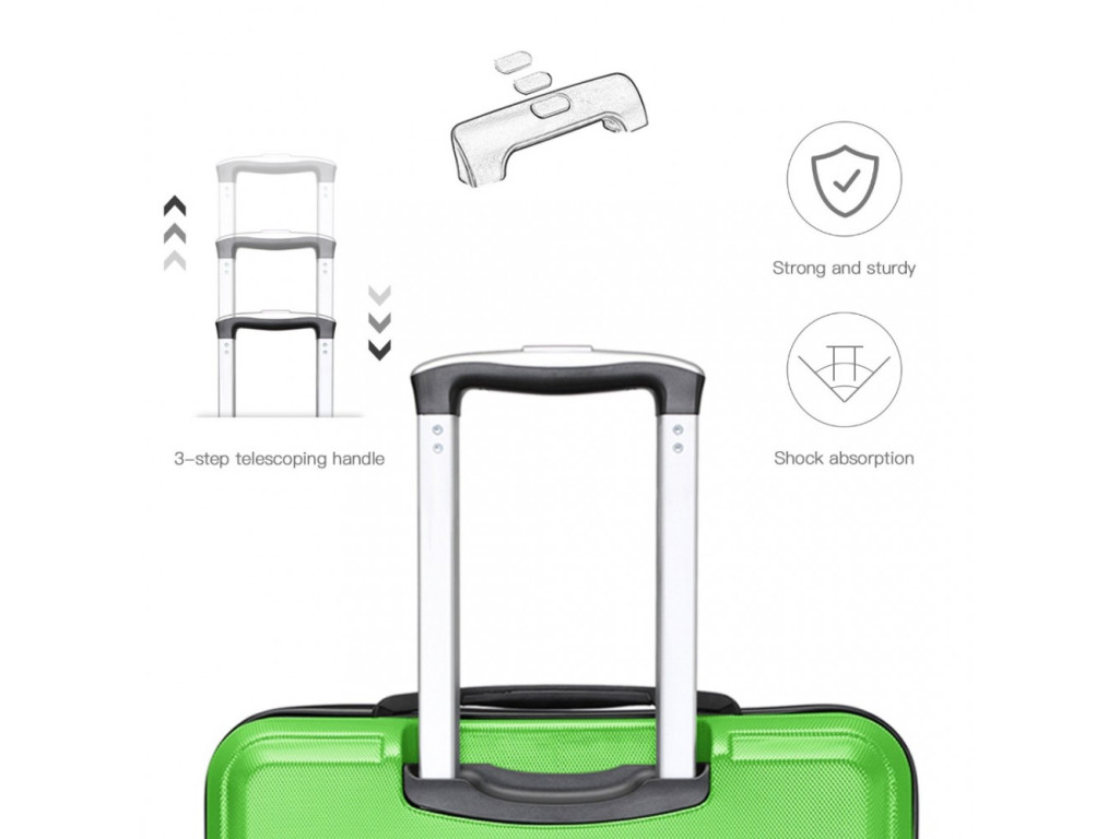 Vyroben z ABS s tichými dvojitými kolečky, hliníkovou výsuvnou rukojetí nebo TSA číselným zámkem. ABS materiál nabízí odolnost proti poškrábání a je vhodný do nízkých teplot. ABS materiál není tolik pružný jako polypropylen ale pro občasné cesty je plně dostačující.