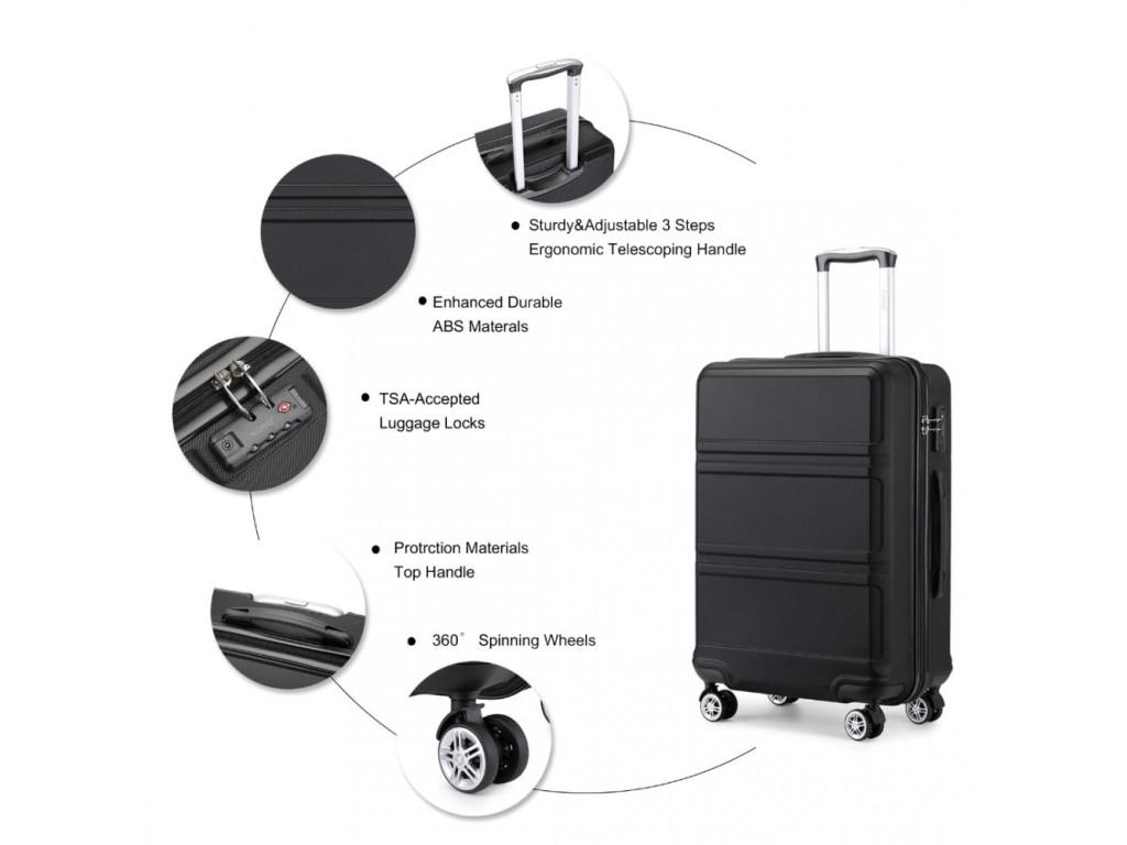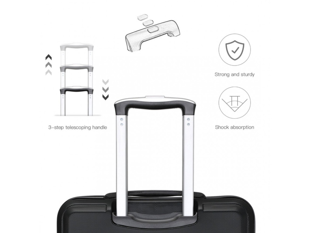 Vyroben z ABS s tichými dvojitými kolečky, hliníkovou výsuvnou rukojetí nebo TSA číselným zámkem. ABS materiál nabízí odolnost proti poškrábání a je vhodný do nízkých teplot. ABS materiál není tolik pružný jako polypropylen ale pro občasné cesty je plně dostačující.