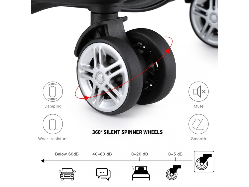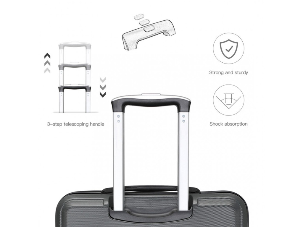 Vyroben z ABS s tichými dvojitými kolečky, hliníkovou výsuvnou rukojetí nebo TSA číselným zámkem. ABS materiál nabízí odolnost proti poškrábání a je vhodný do nízkých teplot. ABS materiál není tolik pružný jako polypropylen ale pro občasné cesty je plně dostačující.