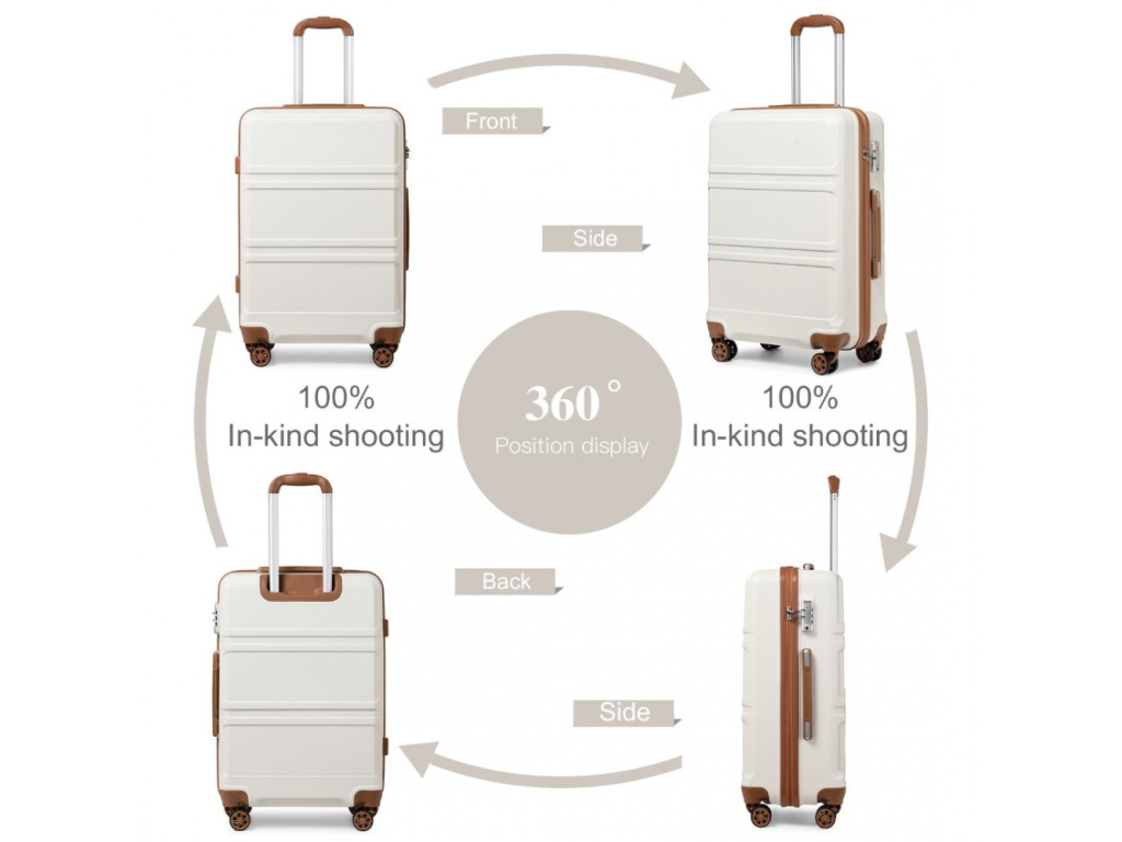 Kono K1871-1L Sada 3 kufry spinner 52/65/75cm Krémová ABS