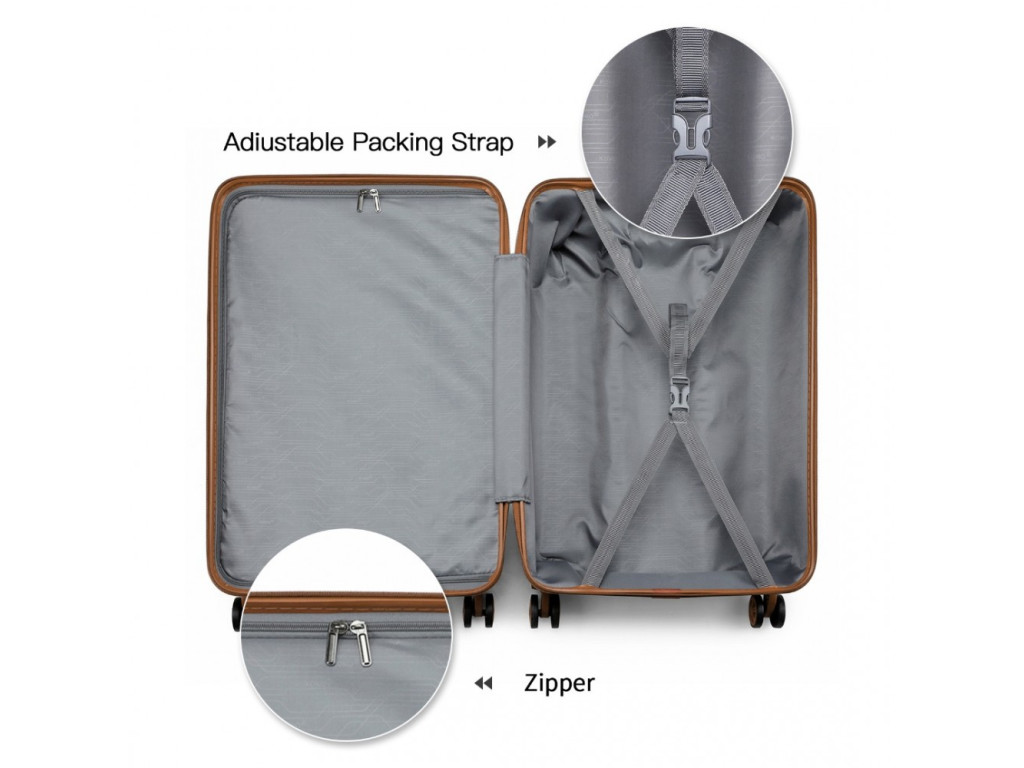 Kufry jsou vyrobeny z materiálu ABS s hliníkovou výsuvnou rukojetí a TSA číselným zámkem. ABS materiál je pevný, nabízí odolnost proti poškrábání a je vhodný do nízkých teplot. Tento materiál není tolik pružný jako polypropylen ale pro nenáročné cesty je plně dostačující.