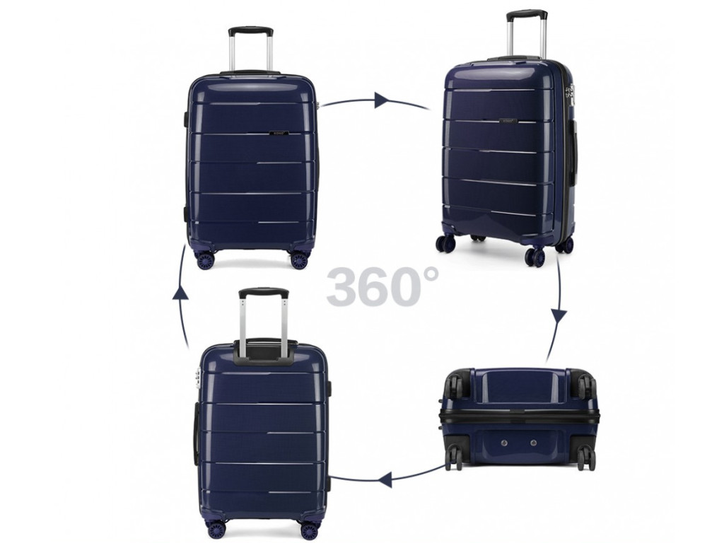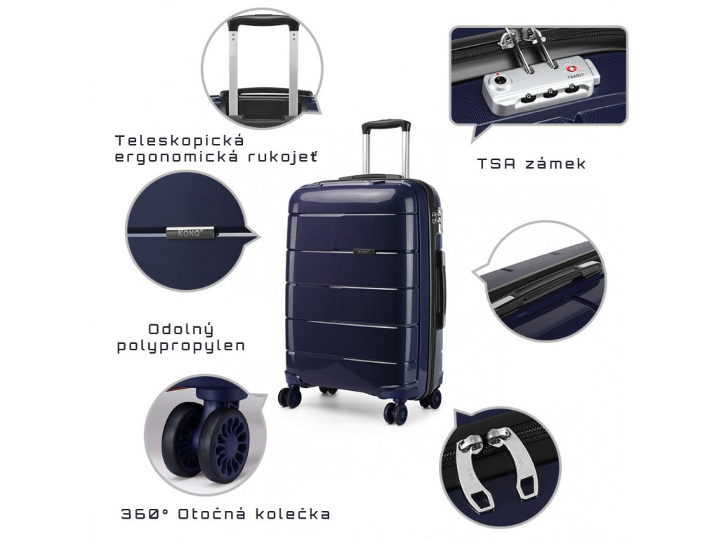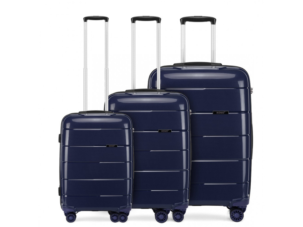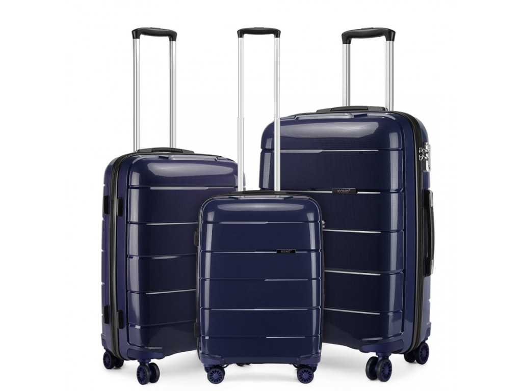 Kono K1997L Sada 3 kufry spinner 55cm 65cm 74cm Tmavě Modrá Navy Polypropylen
