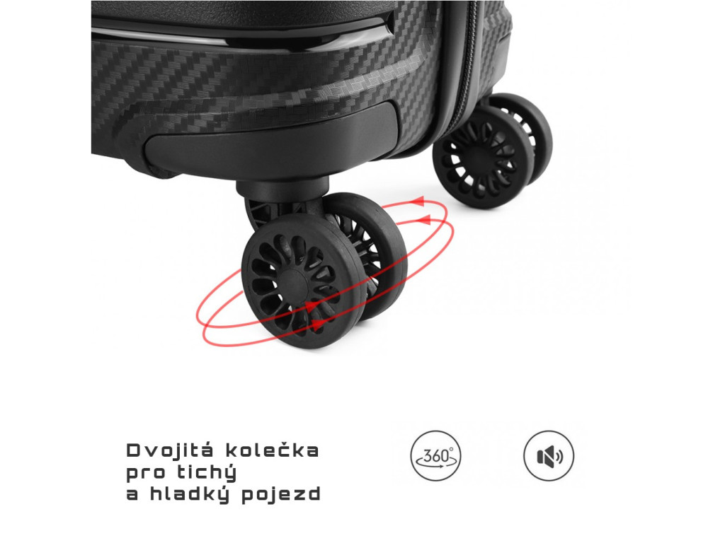 Vyroben z kvalitního polypropylenu s tichými dvojitými kolečky, hliníkovou výsuvnou rukojetí nebo TSA číselným zámkem. Mezi hlavní výhody polypropylenu je výborná použitelnost při cestování letadlem. Polypropylen je odolný proti prasknutí a při nárazech se vrátí do původního tvaru. Naproti tomu kufry vyrobené z ABS jsou náchylné na praskání při mechanickém působení sil.