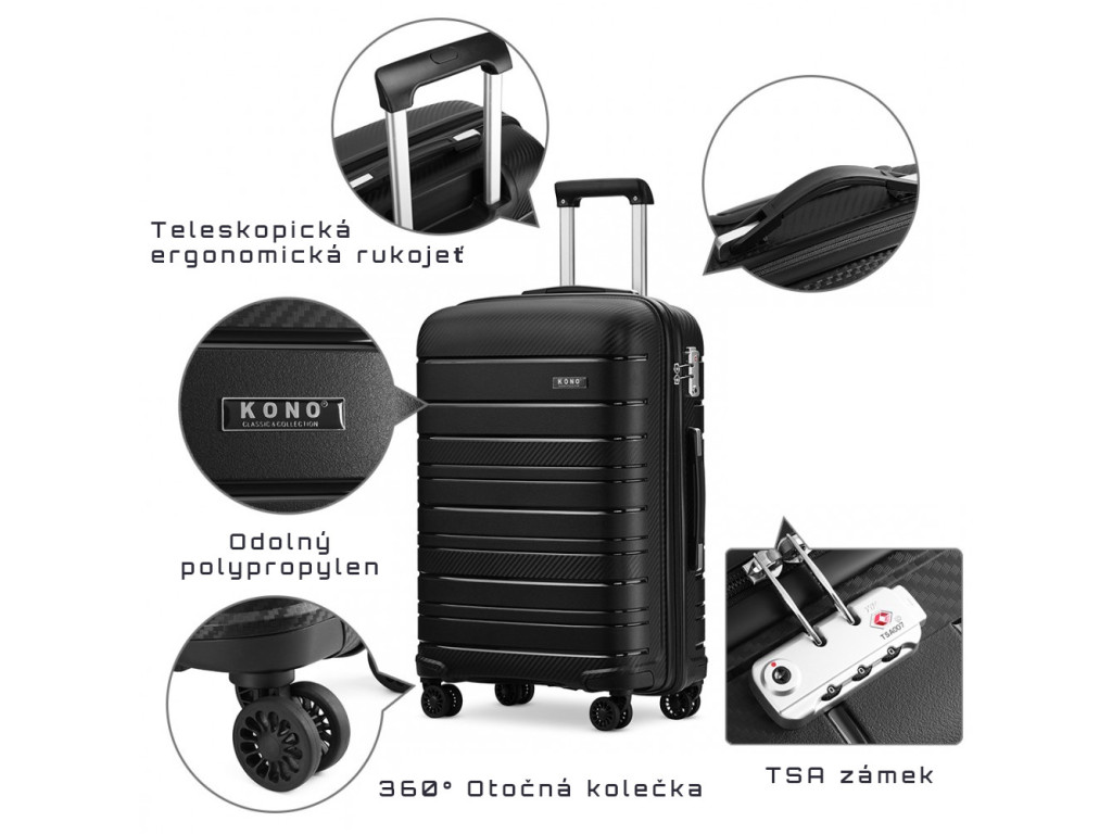Kono K2091L Kufr spinner 65cm Černý Polypropylen