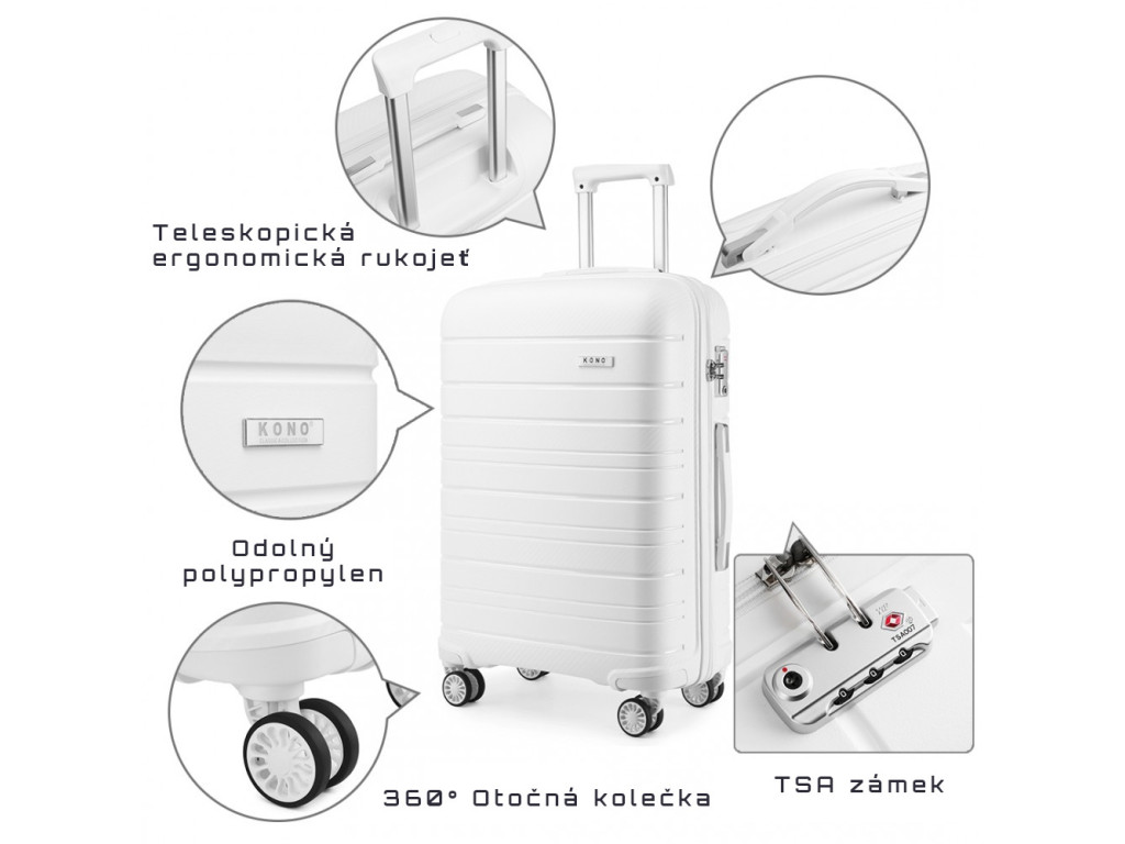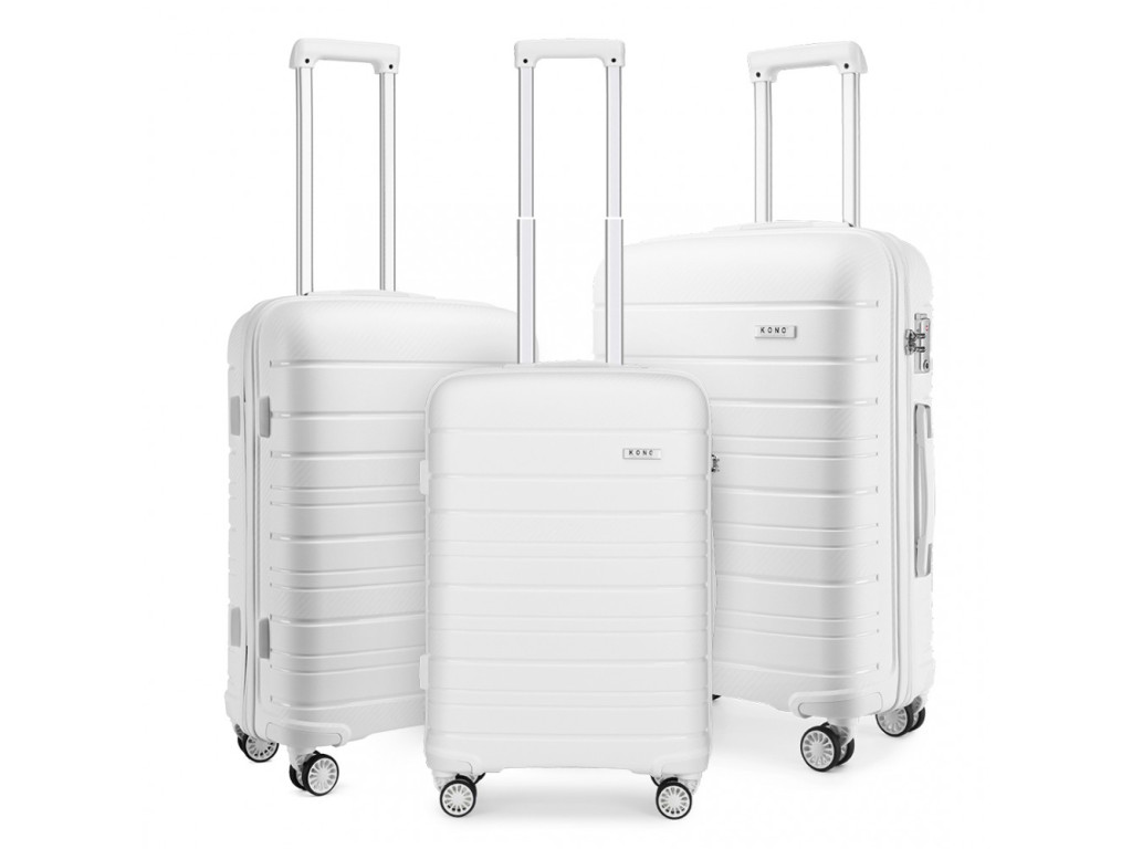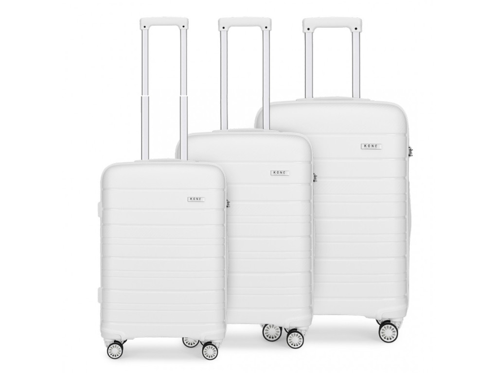 Kono K2091L Sada 3 kufry spinner 55cm 65cm 76cm Bílý Polypropylen