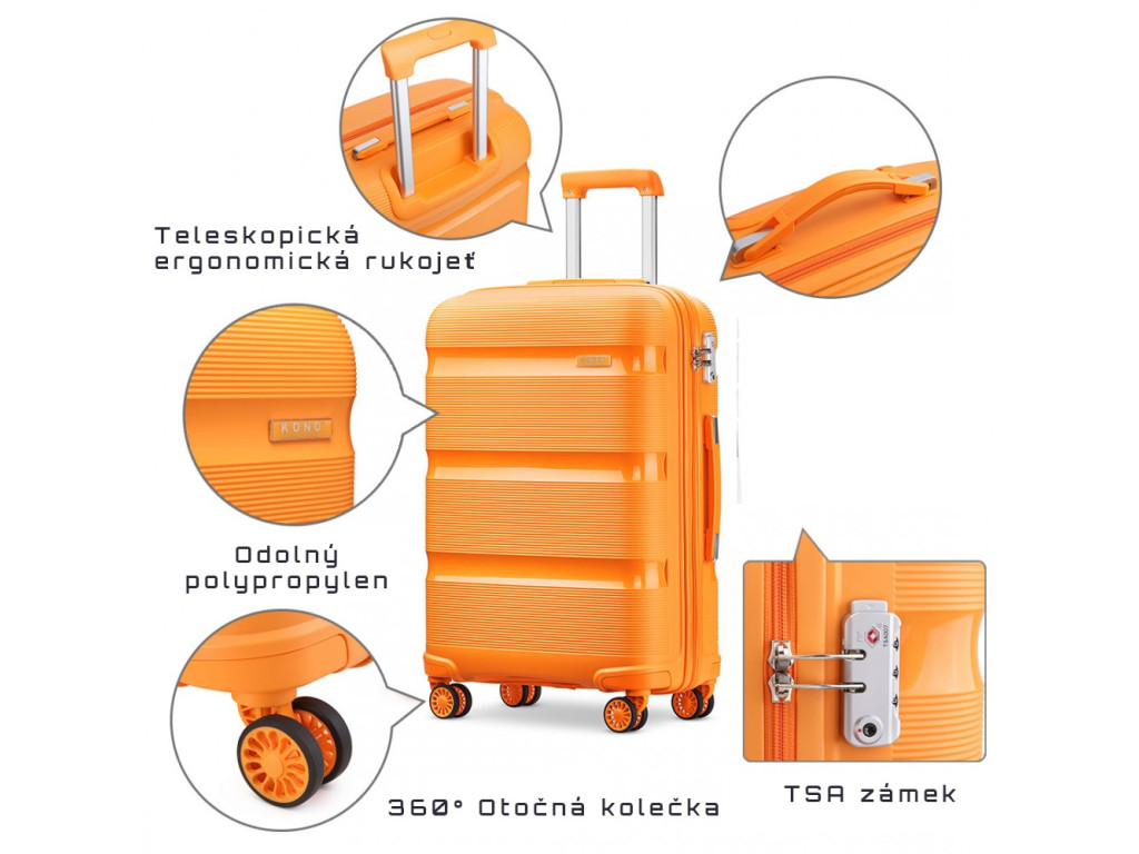 Kono K2092L Kufr spinner 65cm Oranžový Polypropylen